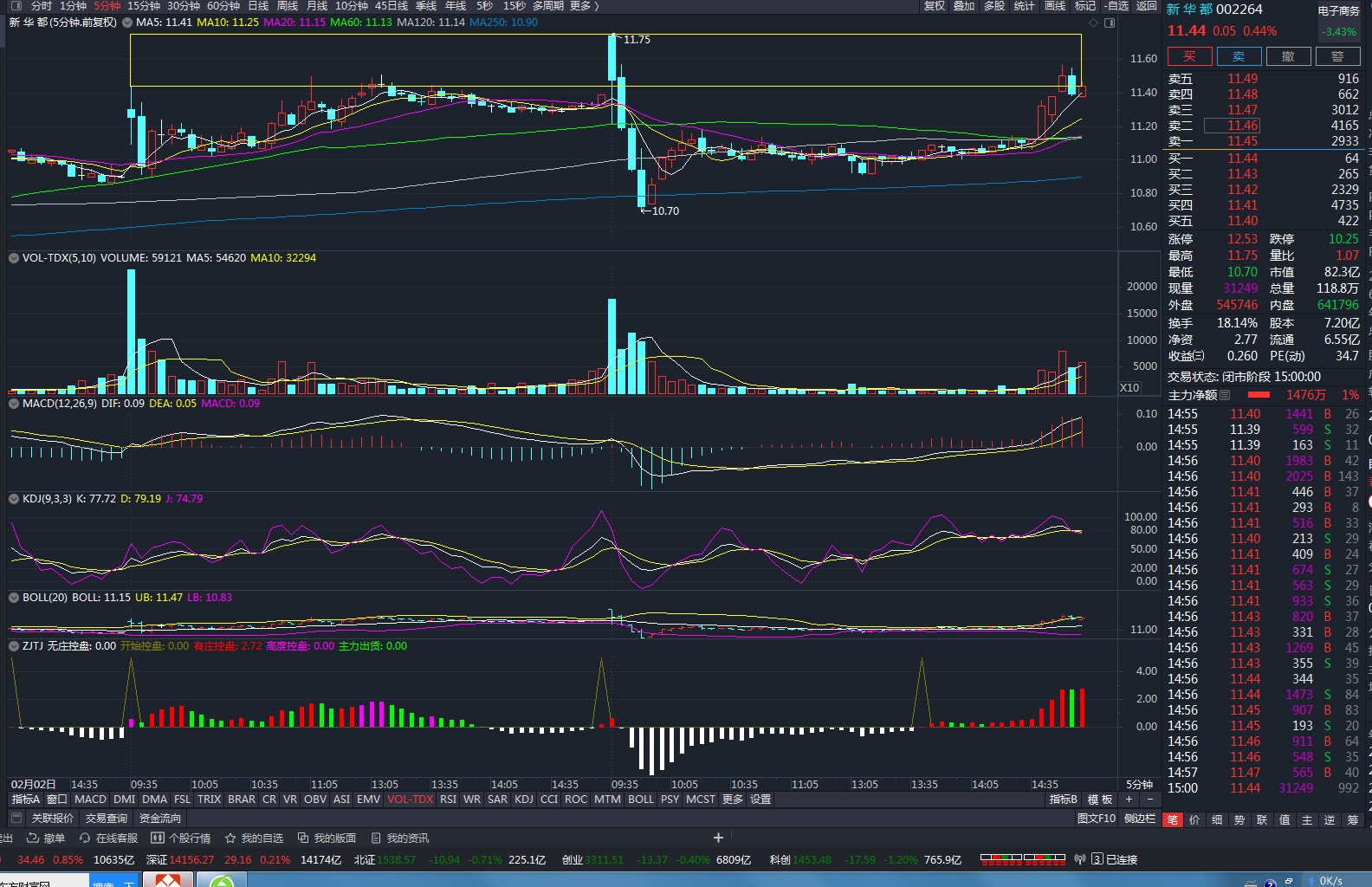 今天11.44元收盘价位正好收在昨天早盘前5分钟时间最高反弹价位11.44元处,