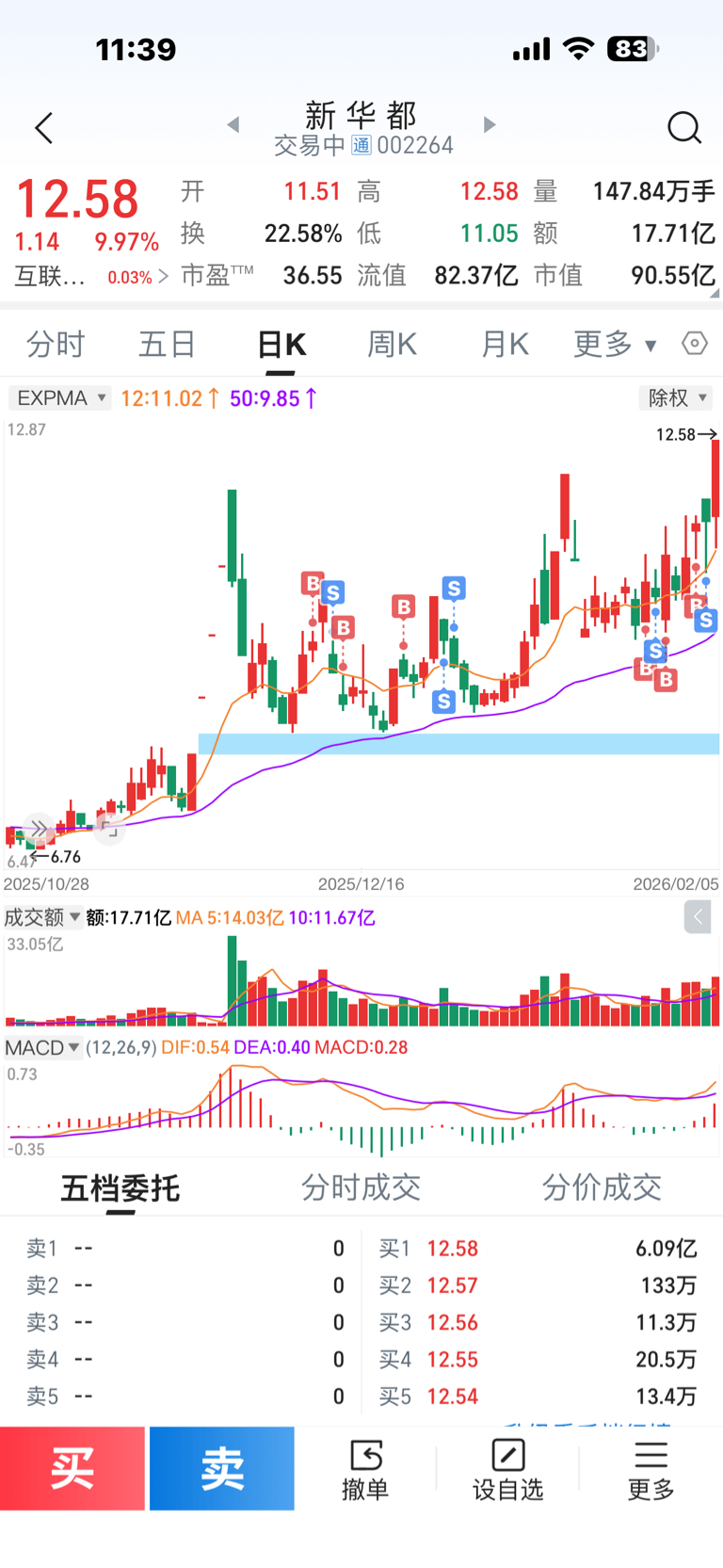 $新 华 都(SZ002264)$ 昨天清仓,今天涨停