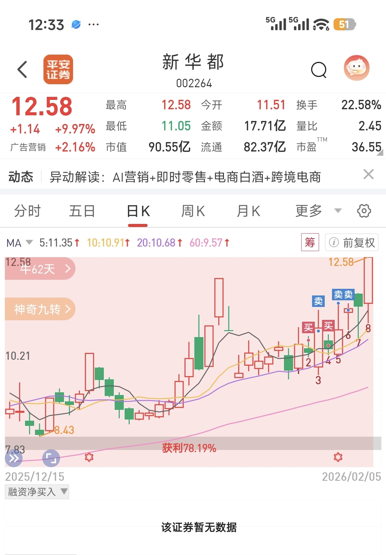 $新 华 都(SZ002264)$ 前天卖了,还庆兴卖对了,哎,喝了个汤