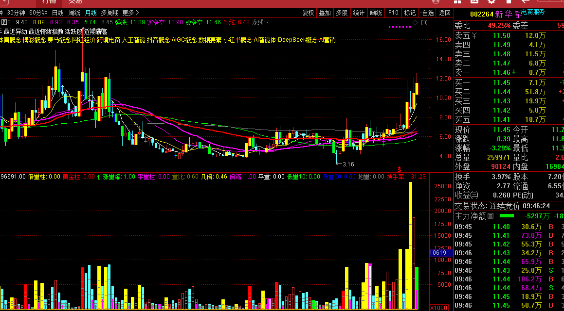 如果没有传递ai应用这两天大涨,新华都早就跌下来了