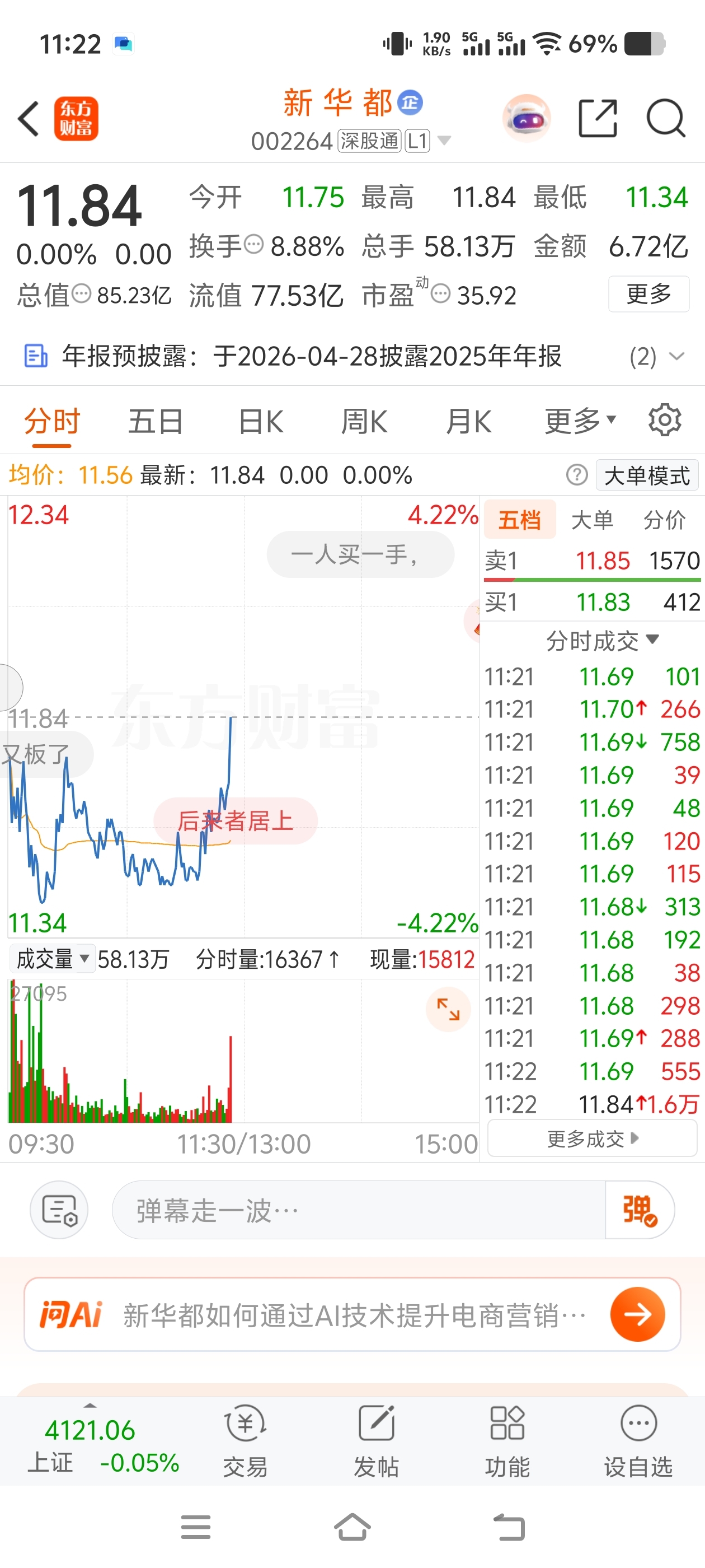 $新 华 都(SZ002264)$ 刚说完呼叫万手哥点火起飞,就来个万手哥拉直线了,以为要跌停过年了
