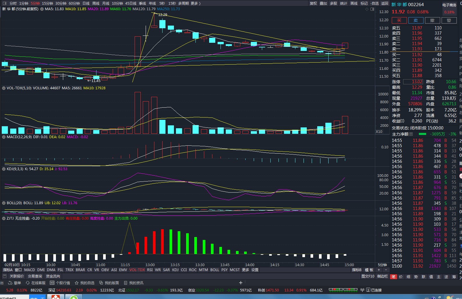 60分线三线合一,5分线一个标准的收敛三角形,日线标准的上升通道,明天一根放量大阳线包二根阴线上涨。