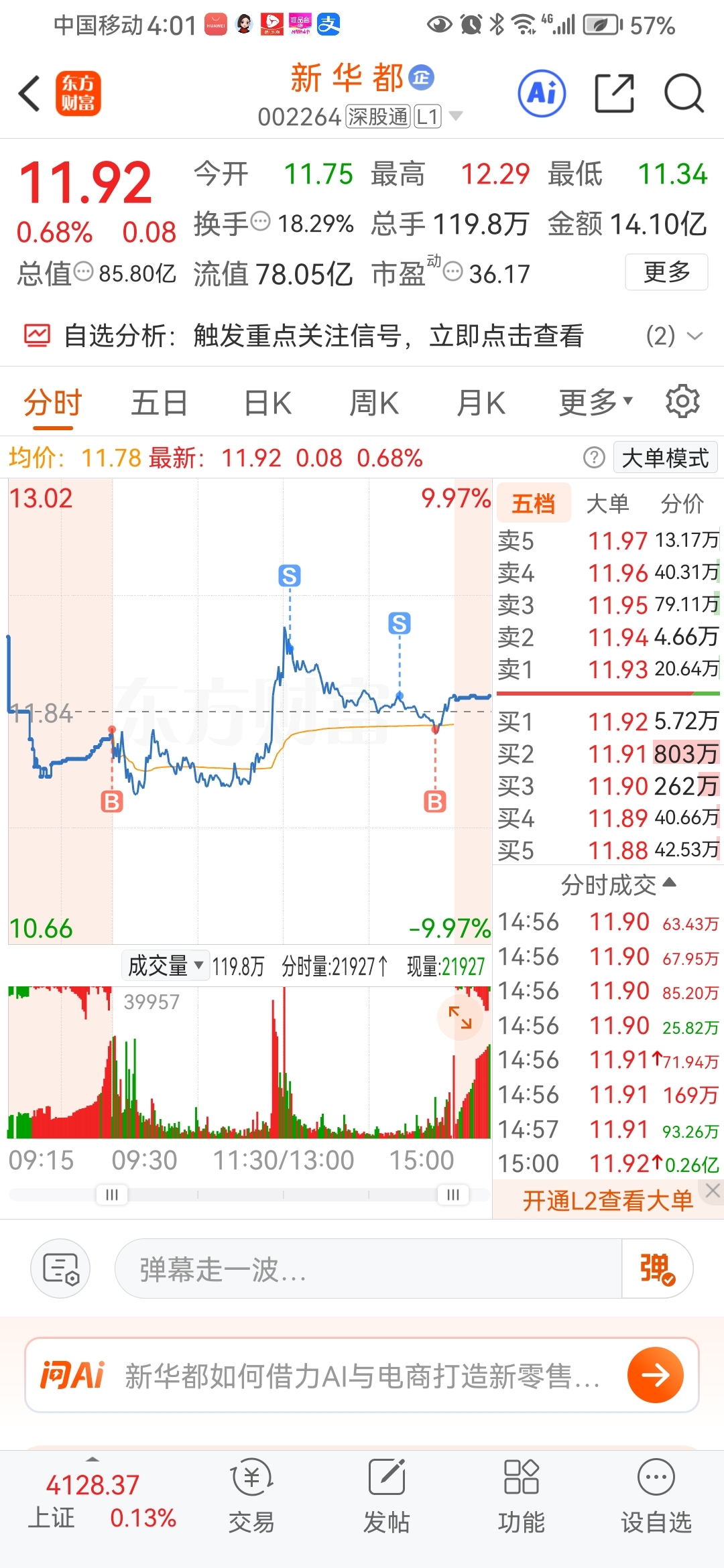$新 华 都(SZ002264)$ 跌就买涨就跑,反正不清仓