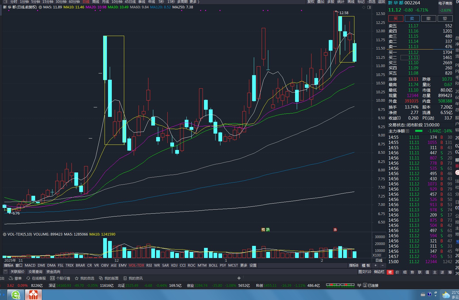 去年11月27日以后的走势正在复制,今天走到了去年12月3日那个地方来了,明天会在20日均线上面收一根缩量中阴线,后天及节后会连续放量大阳线反弹4个交易日,然后又开始横盘了。