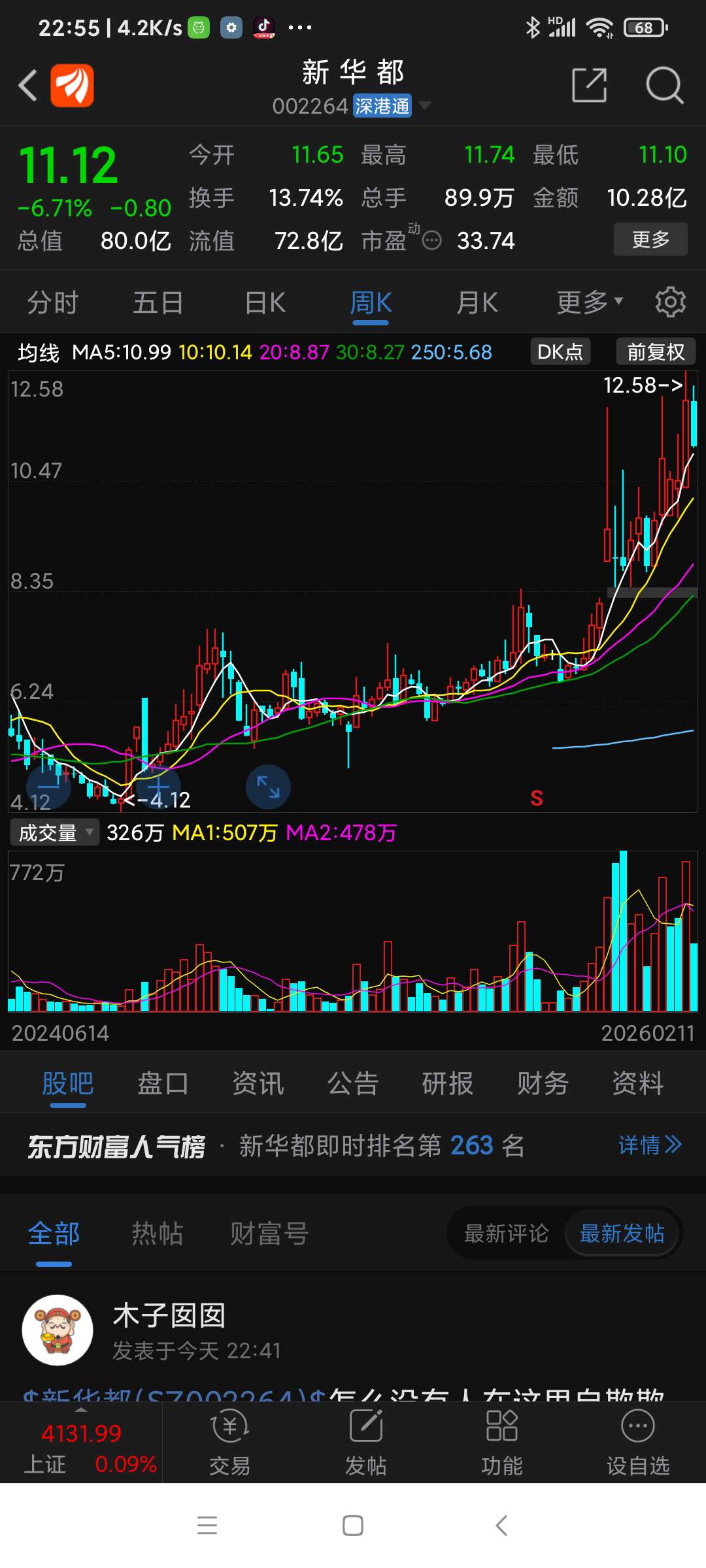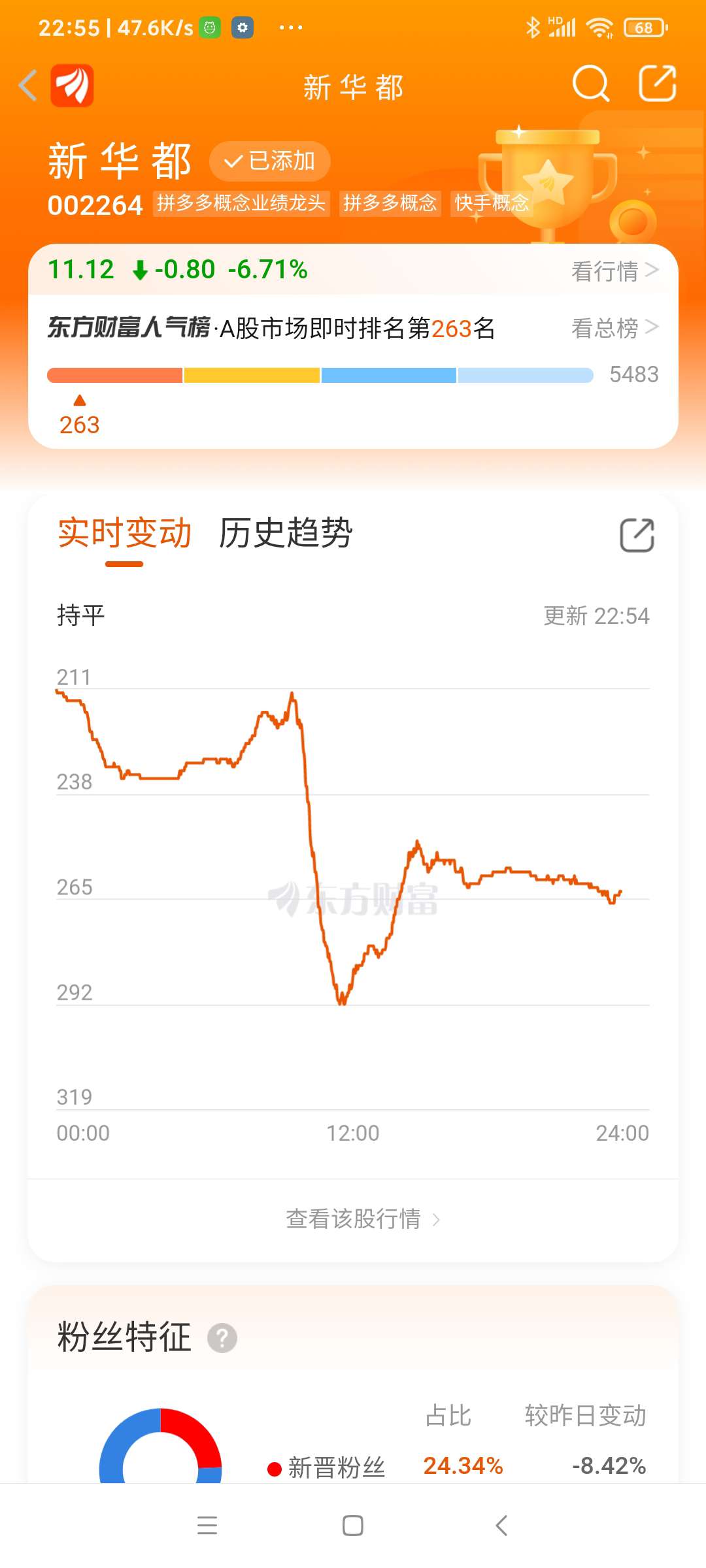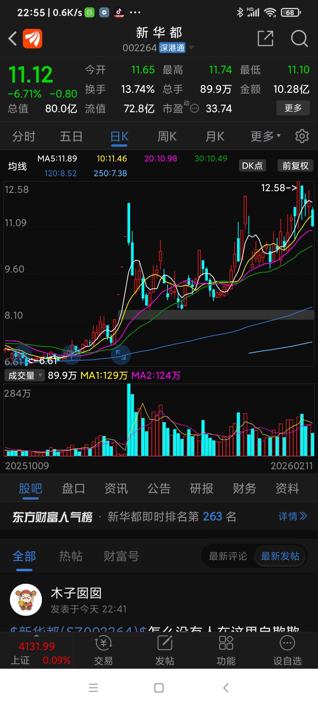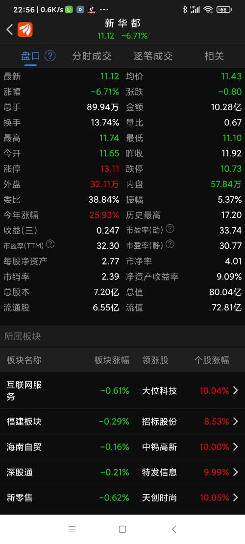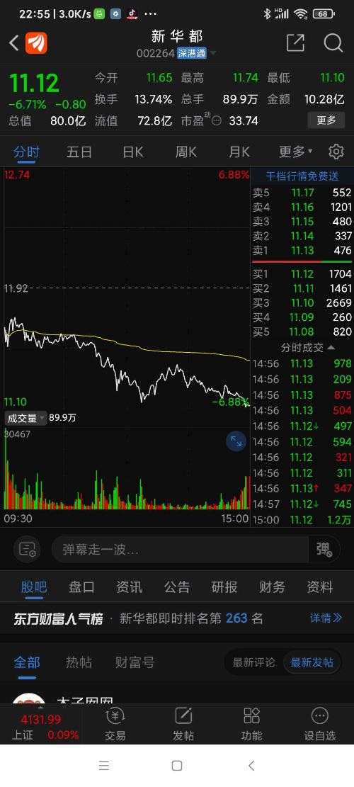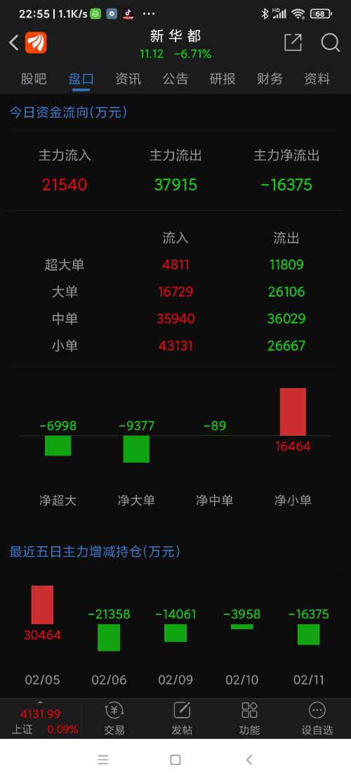 新华都,今日震荡下跌,上午11.52买进的已被套,鉴于其股性活跃,后市相机操作,