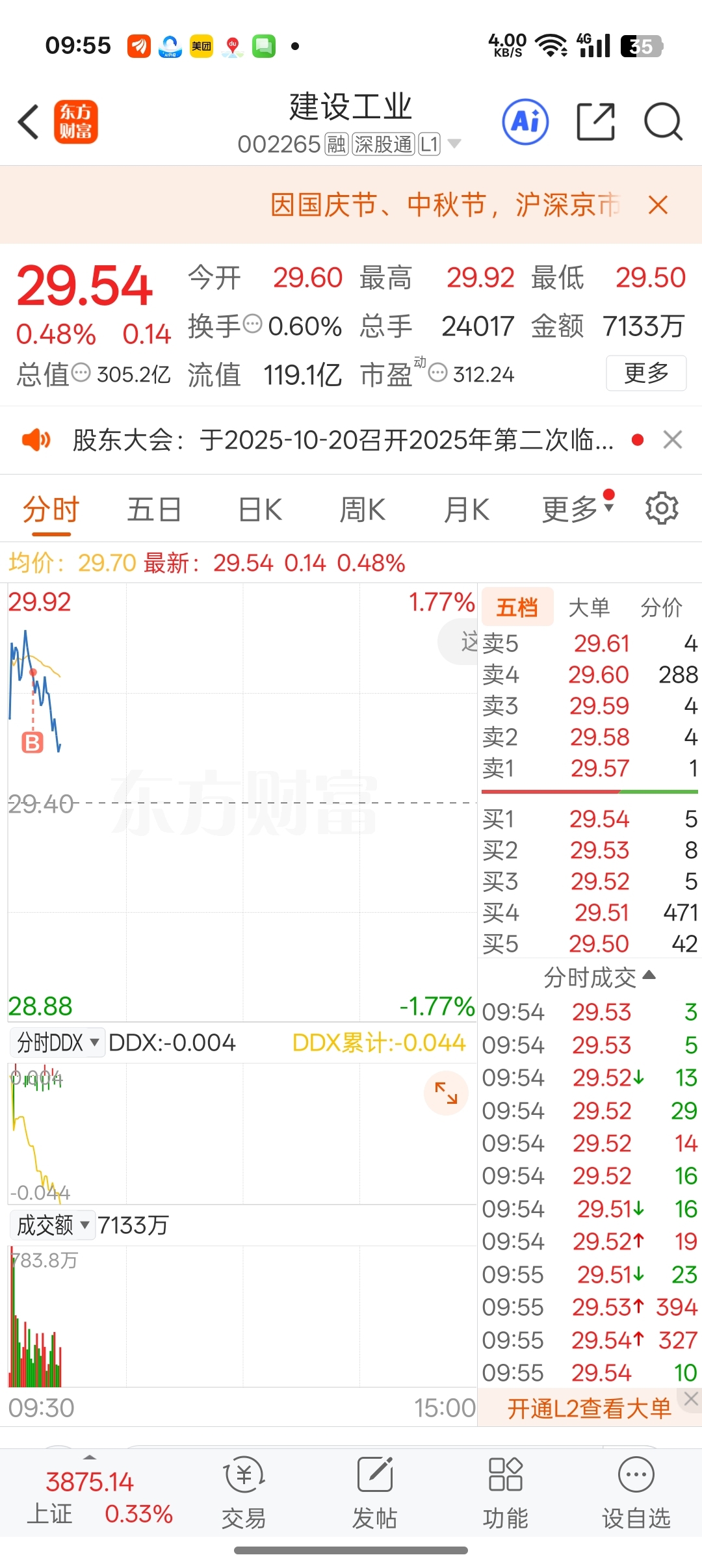 $建设工业(SZ002265)$ 买一次套一次,个腿了