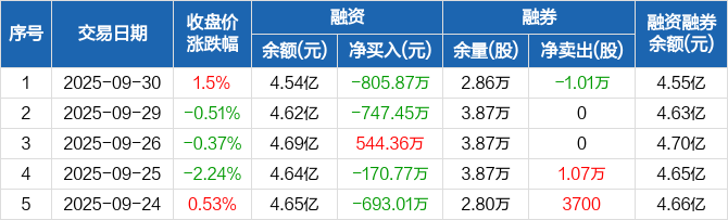 建设工业:融资净偿还805.87万元,融资余额4.54亿元(09-30)