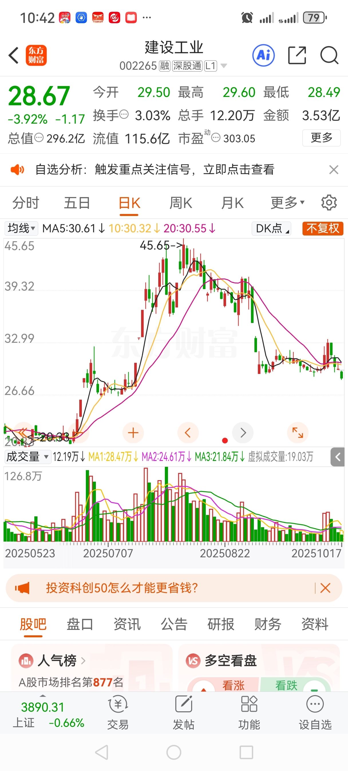 $建设工业(SZ002265)$ 这么便宜的筹码主力都不接,看还要深跌