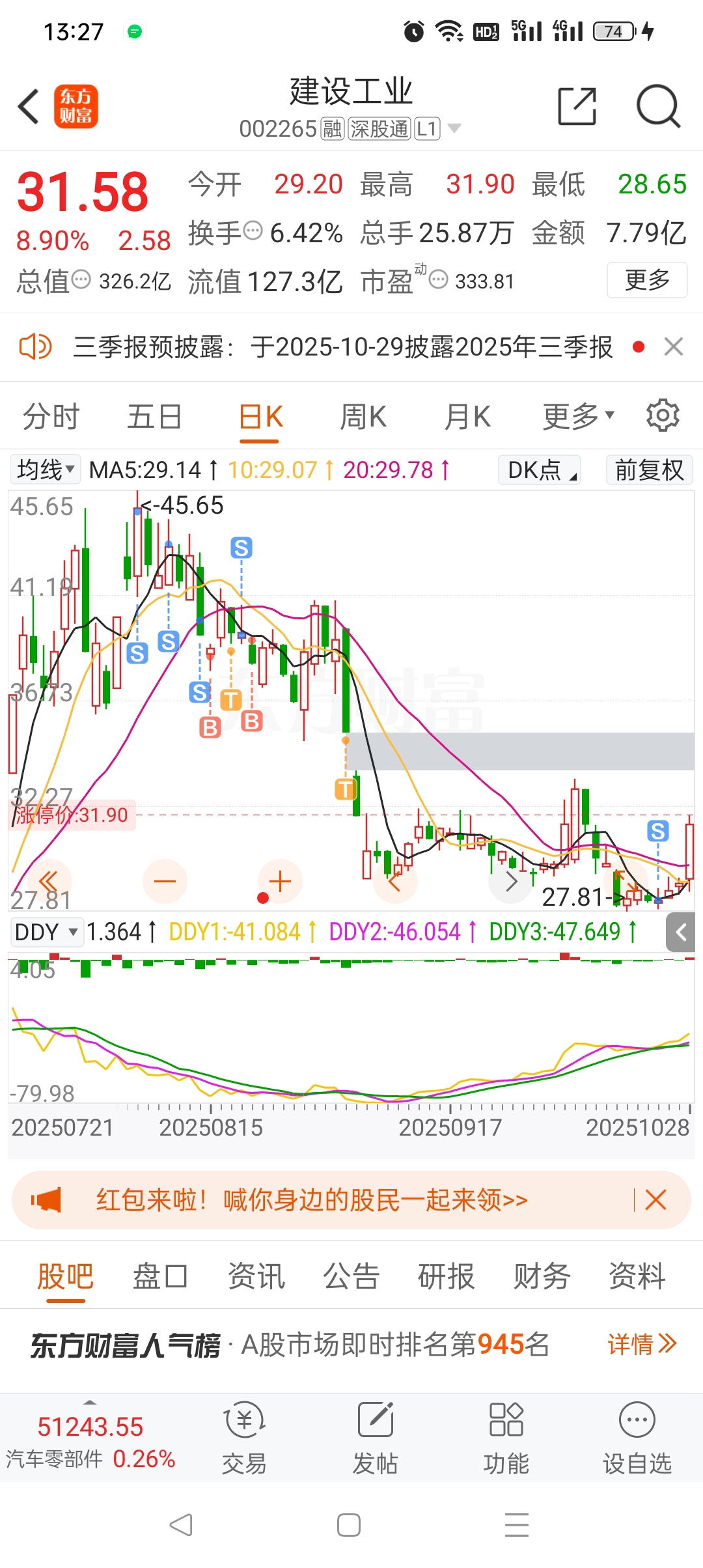 $建设工业(SZ002265)$ 最低点出去了,是在监测我么???