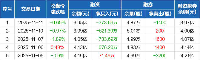建设工业:连续4日融资净偿还累计2404.96万元(11-11)