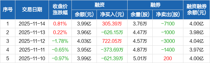 建设工业:融资净买入305.39万元,融资余额3.99亿元(11-14)
