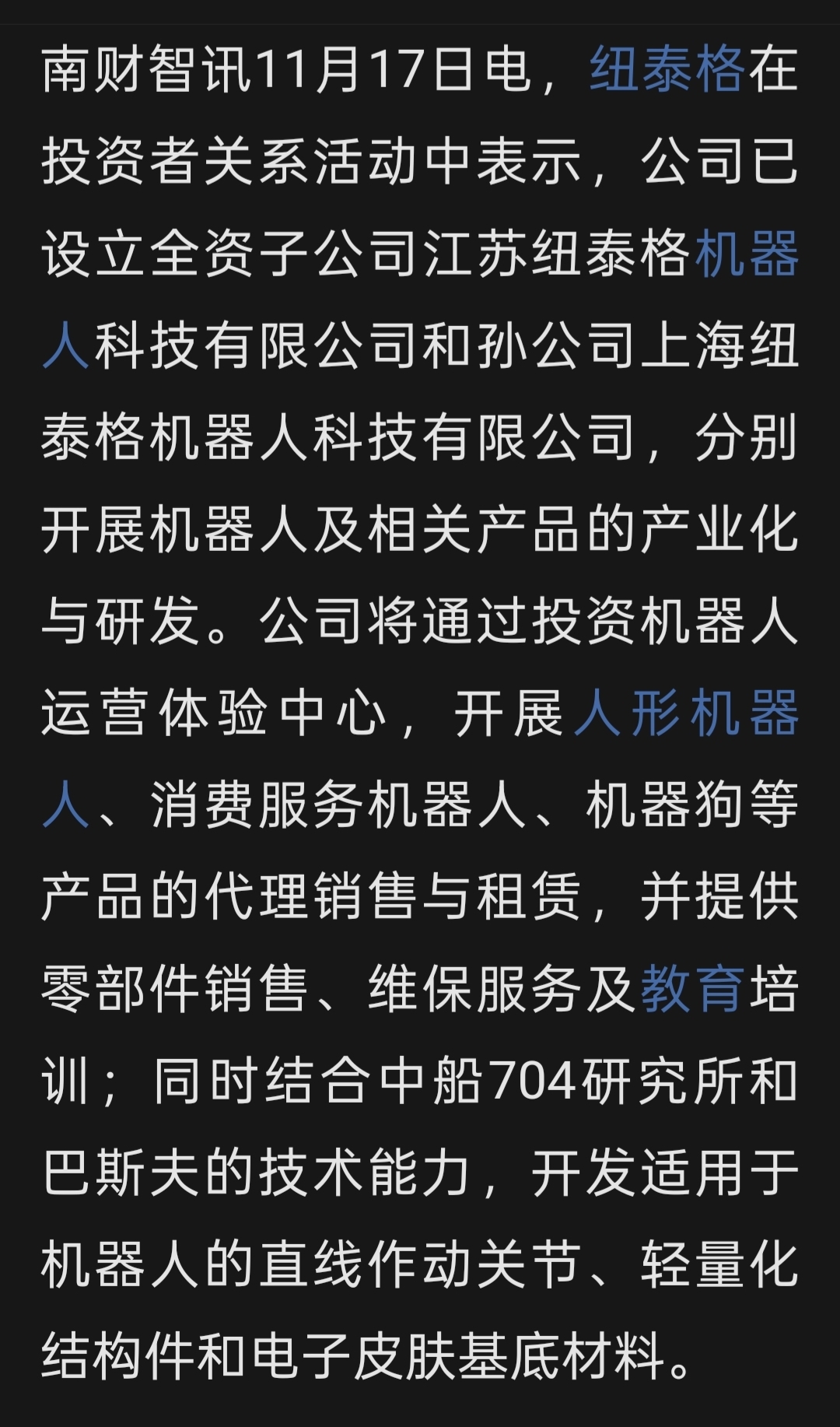 $建设工业(SZ002265)$ 纽泰格结合中船704研究所提供机器狗零部件
