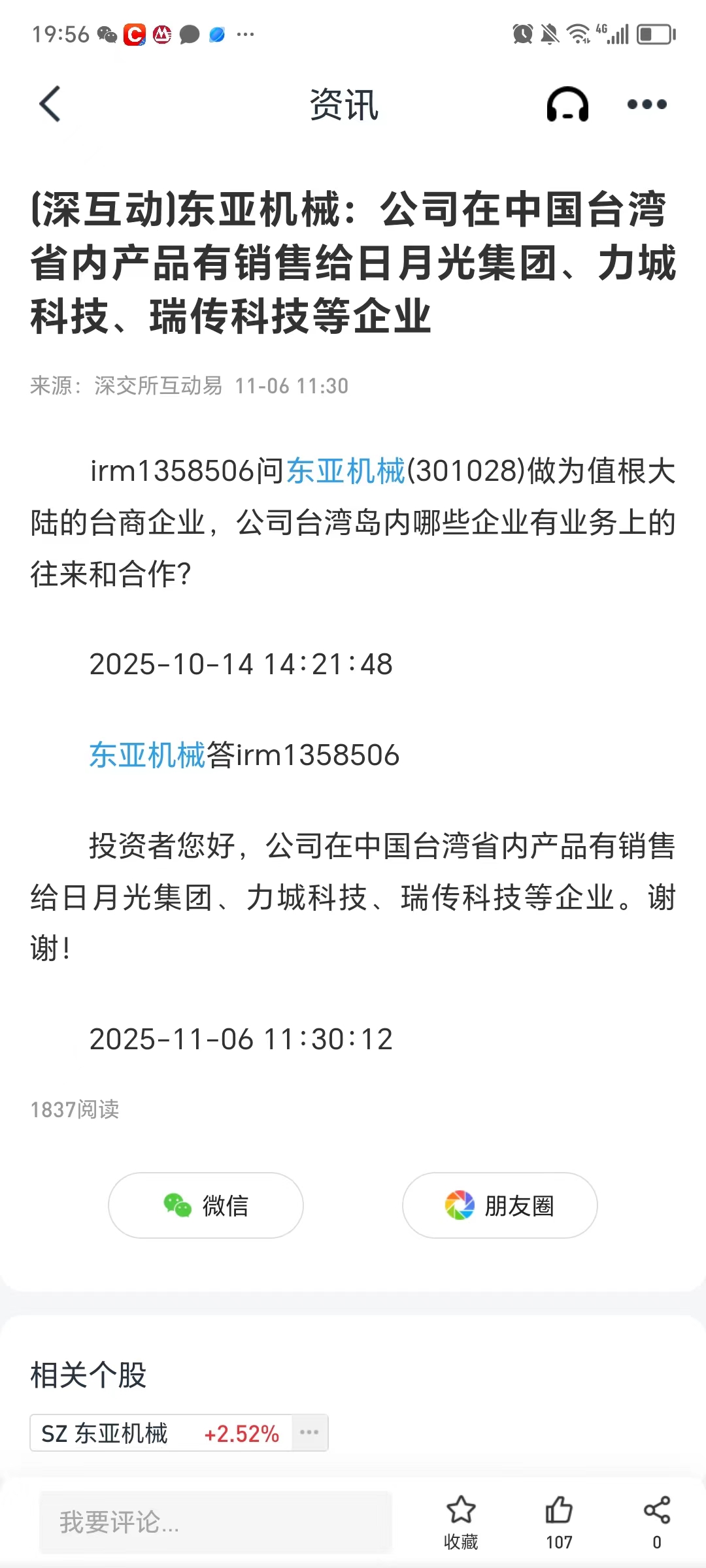 东亚机械才是真正的两岸融合概念股,跟台湾有合作的,并且是军工概念股