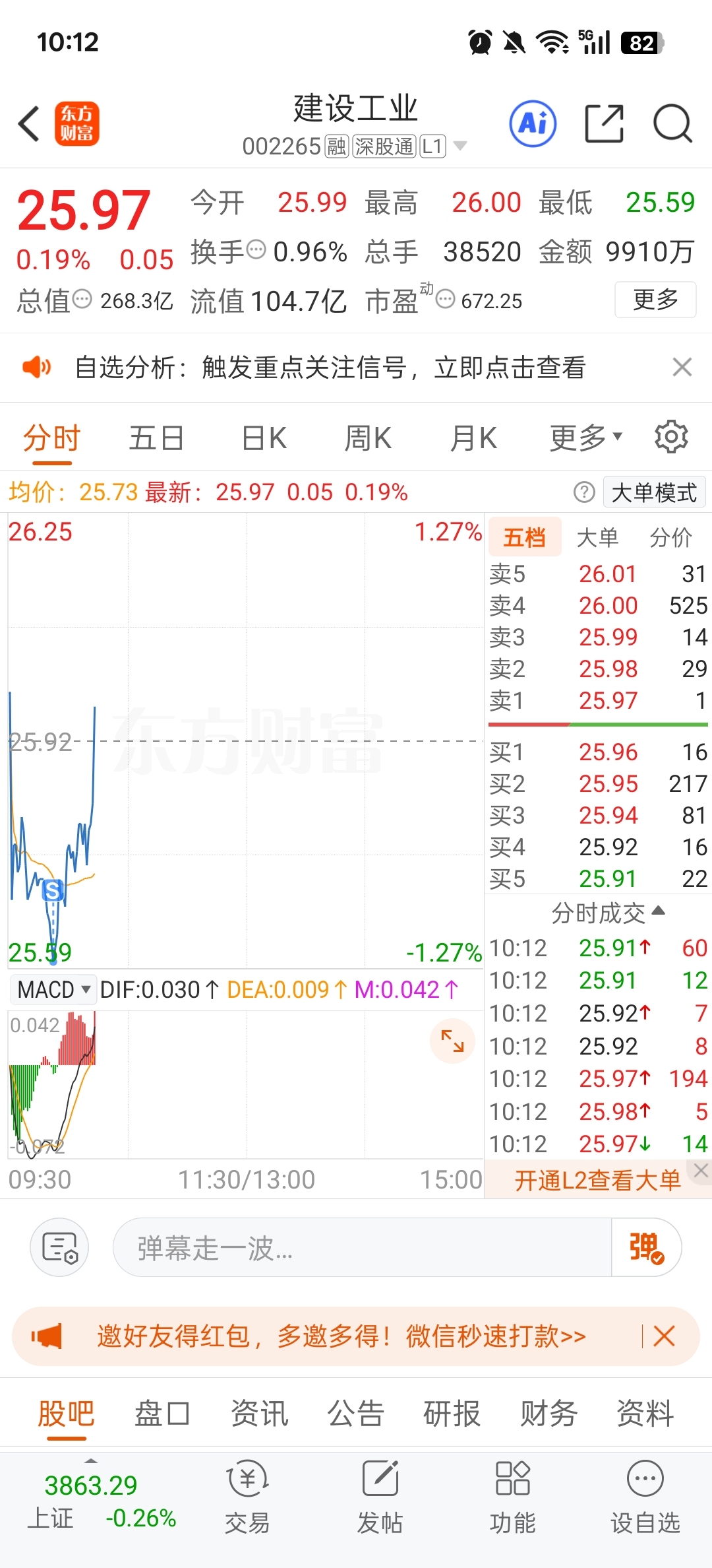 $建设工业(SZ002265)$ 就盯着我