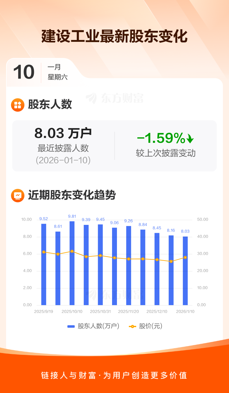 建设工业:截至1月10日最新股东户数8.03万户,较上期减少1.59%