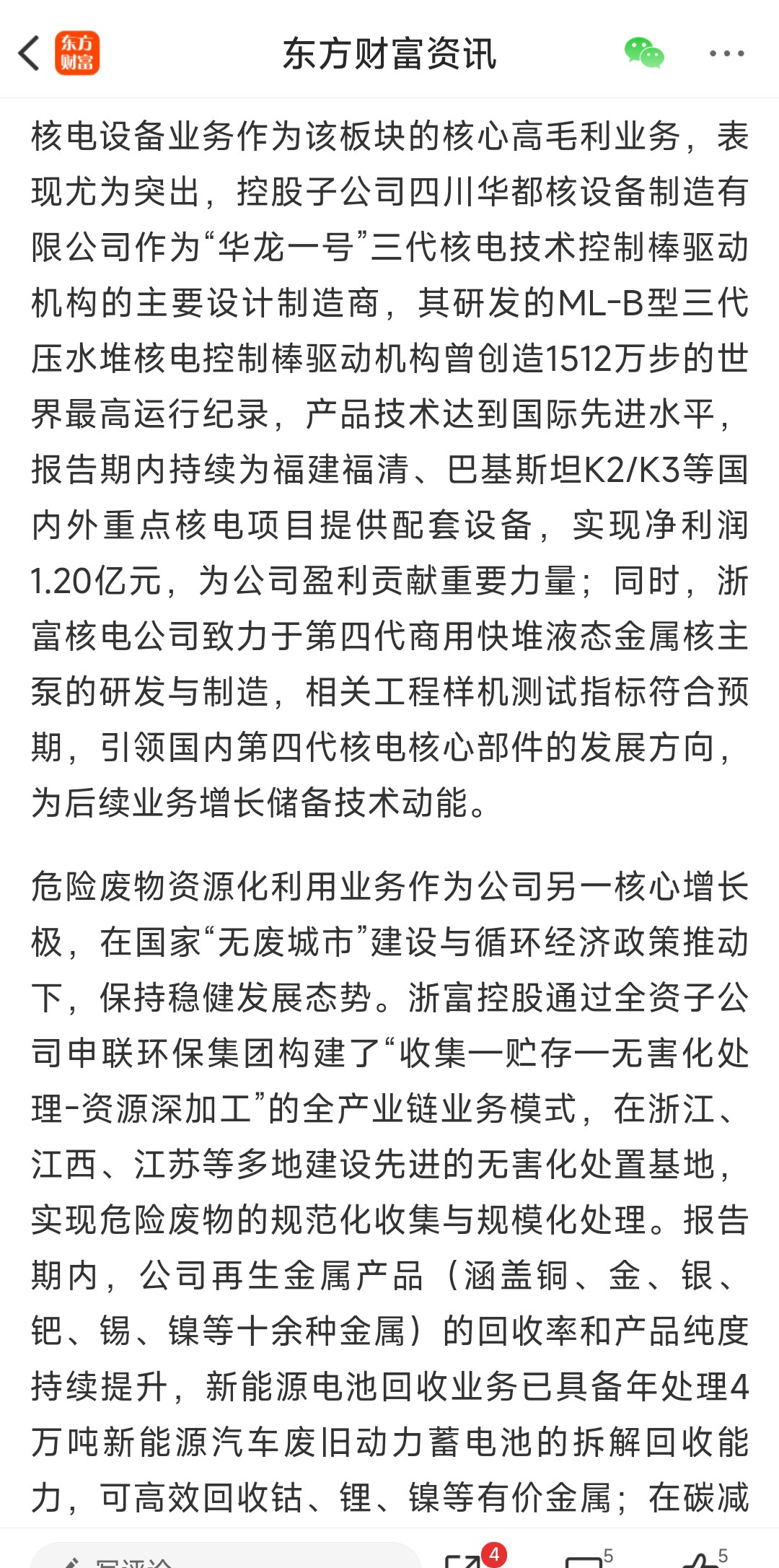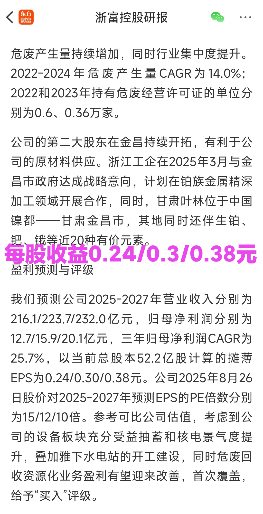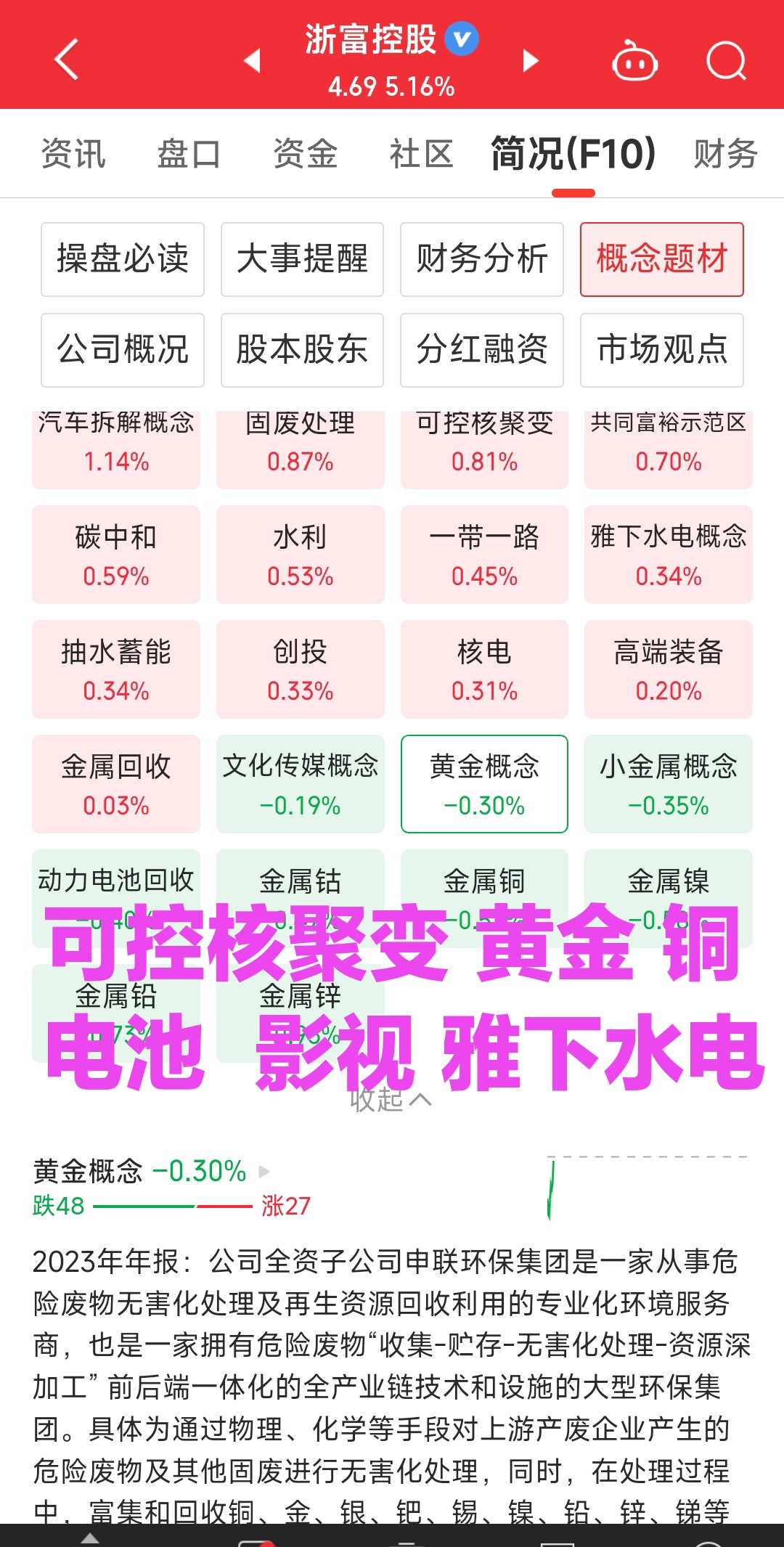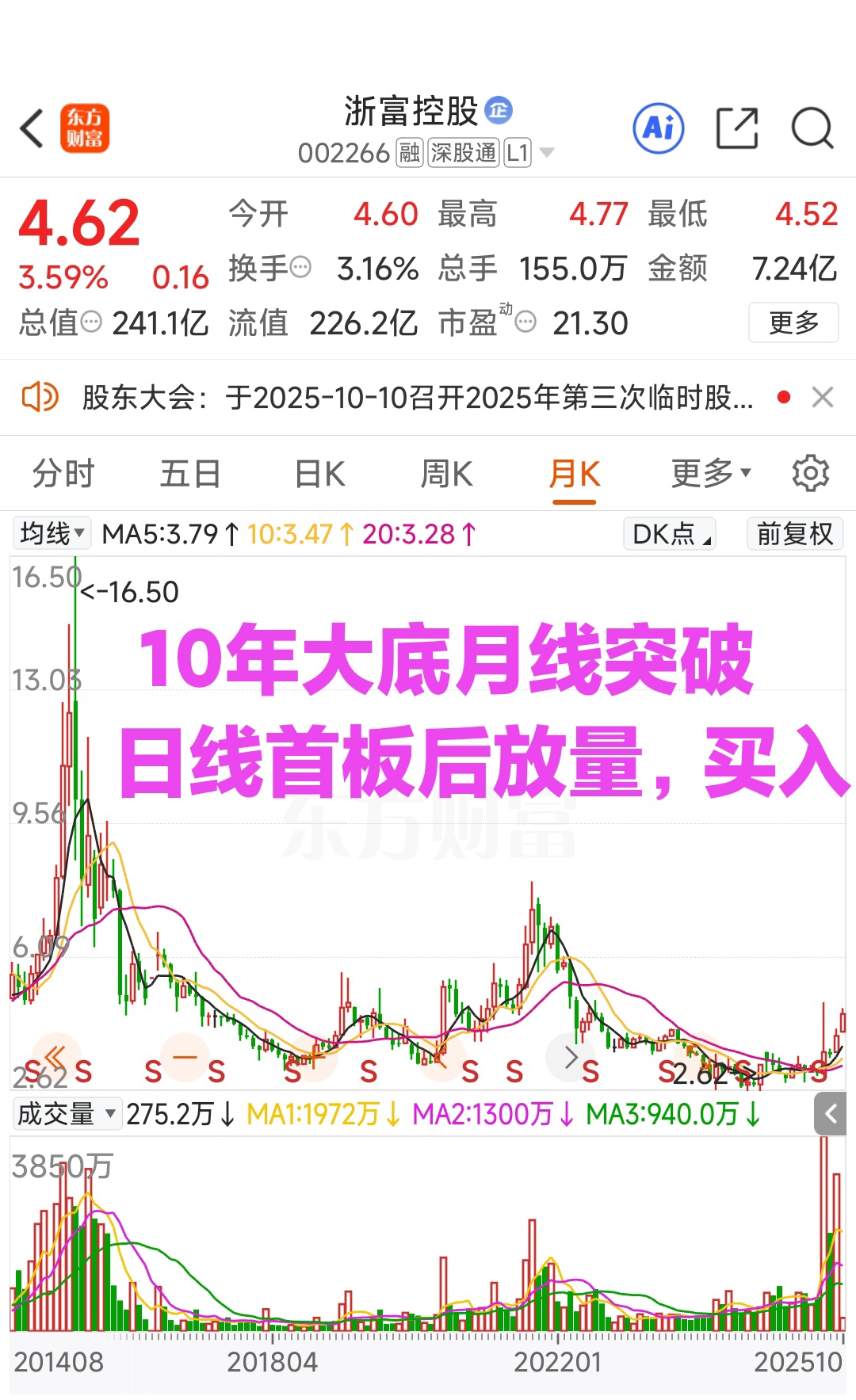 $浙富控股(SZ002266)$ 可控核聚变+黄金+铜银钴镍铅锌锡锑钯+电池回收+雅下水电+影视+macd金叉,10年大底月线突破,日线首板后放量换手,突破4.92元后将攻击8.06元。中报增16.8%,2025-27每股收益0.24/0.3/0.38元