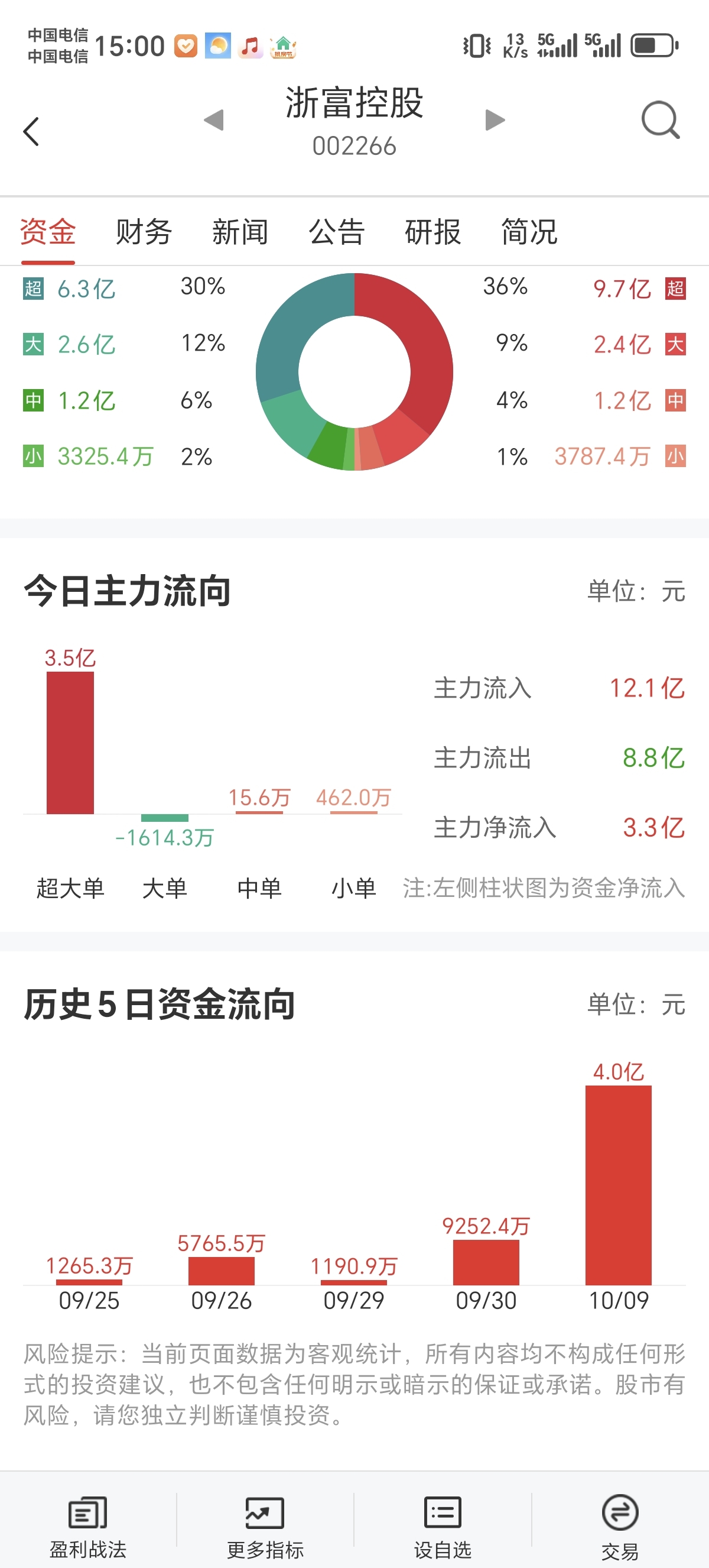 $浙富控股(SZ002266)$ 近5日资金流向!