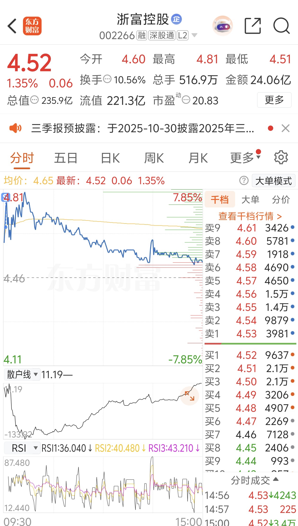 $浙富控股(SZ002266)$ 小赚,早晨卖早了,应该等到4.7以上卖。