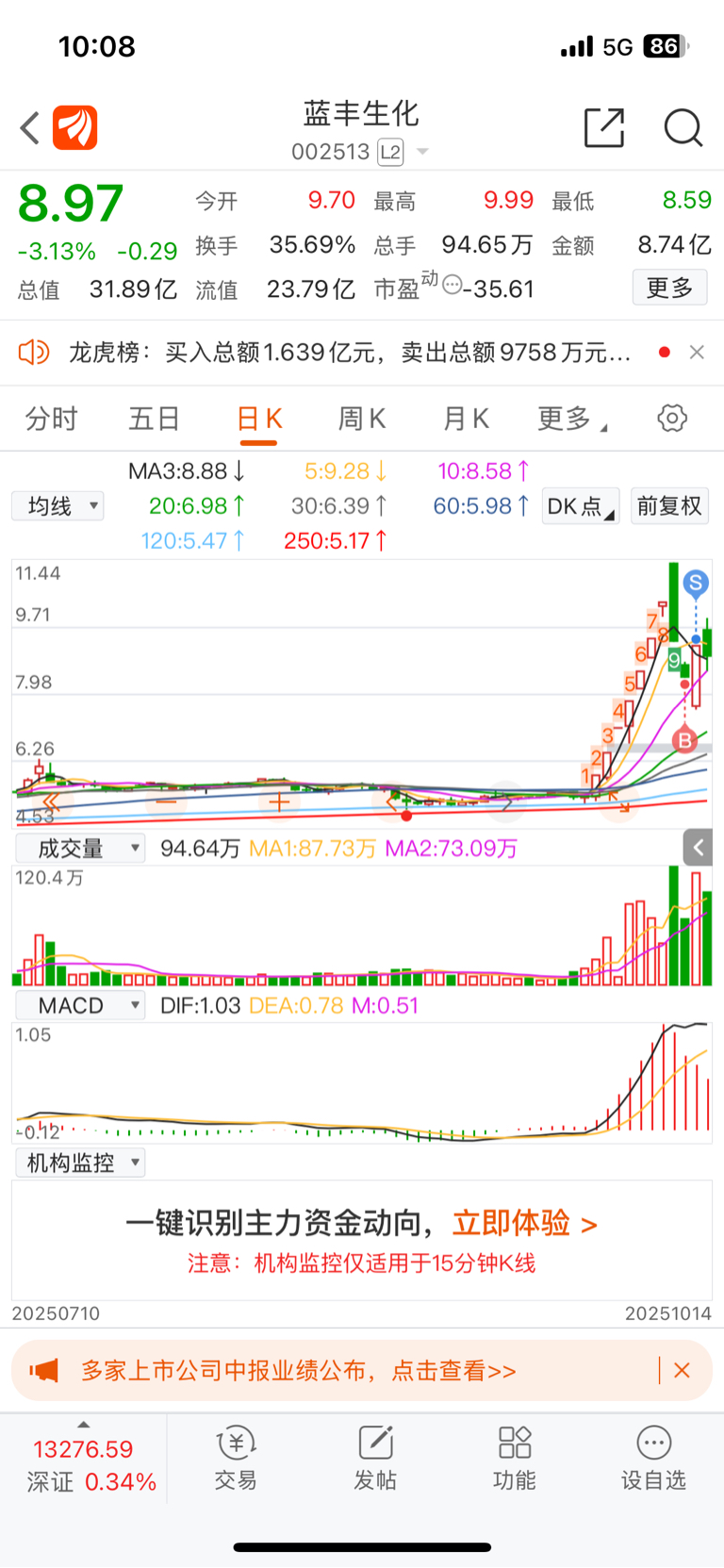 浙富出来去蓝丰在杀个回马枪去龙头合锻本月很舒服,没接回浙富直接上龙头证明是对的。