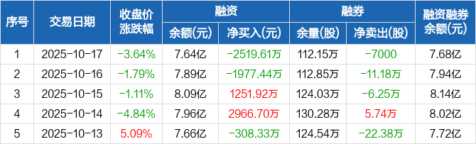 浙富控股:融资净偿还2519.61万元,融资余额7.64亿元(10-17)