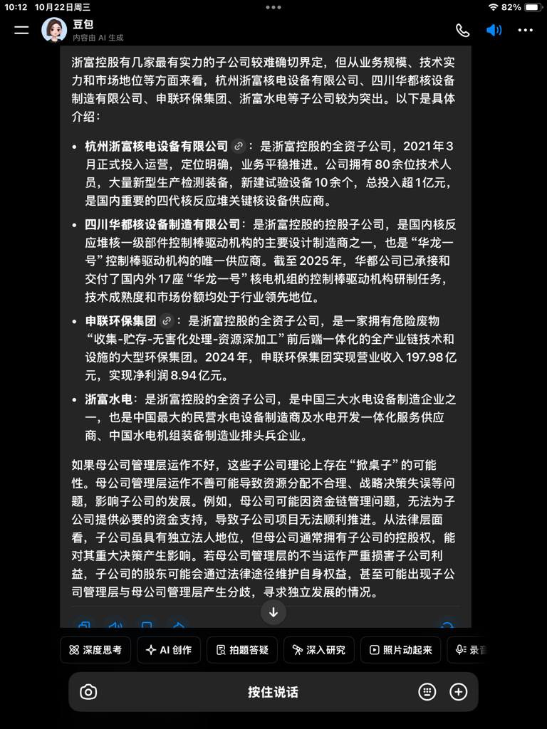 $浙富控股(SZ002266)$ 浙富控股市值体量与管理运作是否构成形像不佳实力不强?强大的子公司对母公司的管理和形象……