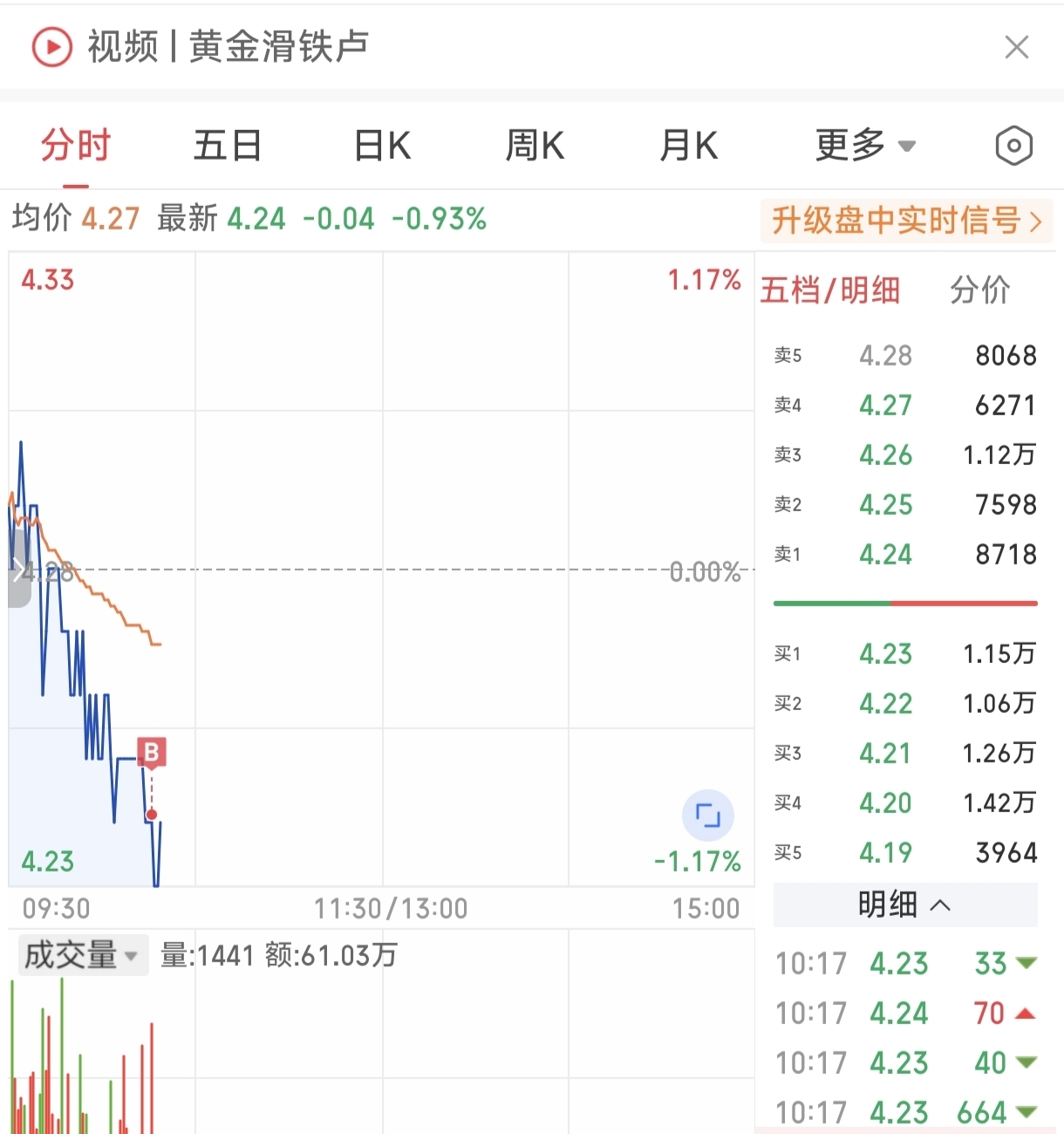 昨晚托的4.23买入一份已成交