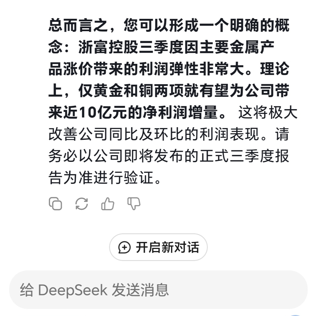 三季度铜价大涨,金价大涨,根据deepseek测算仅此两项预计会增厚公司三季报利
