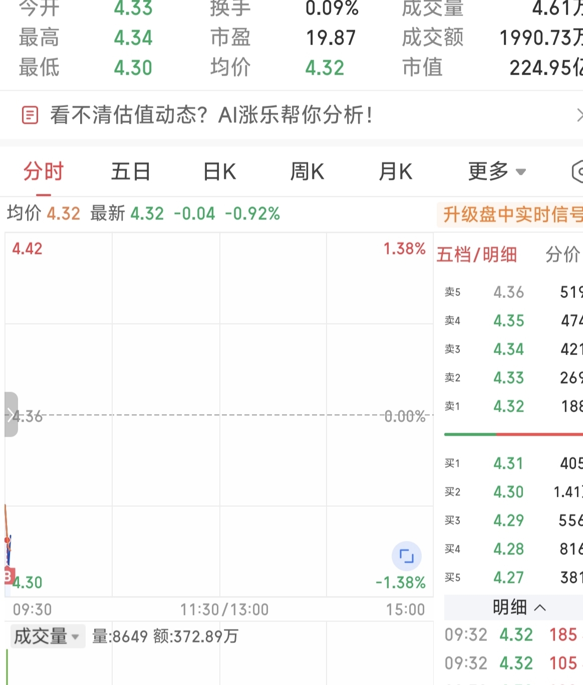 昨天4.37减了半仓,今天分批次慢慢拾回