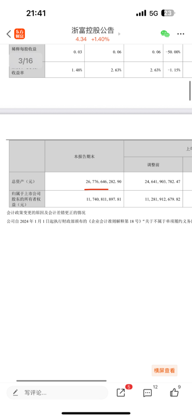 $浙富控股(SZ002266)$ 总资产增加了21亿