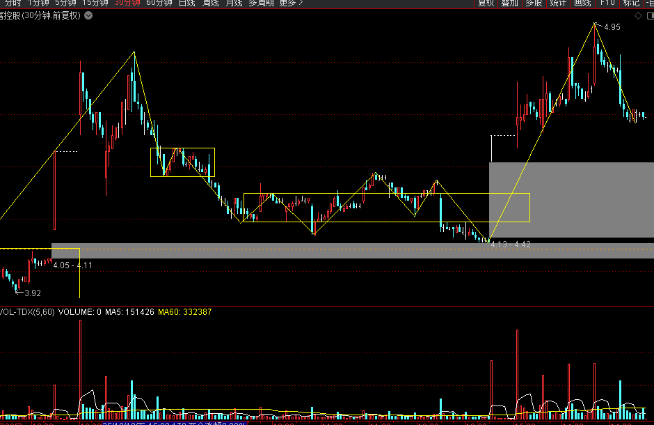 别怕,还得下去,现在做30分钟上升笔,日线下跌笔还没走完。