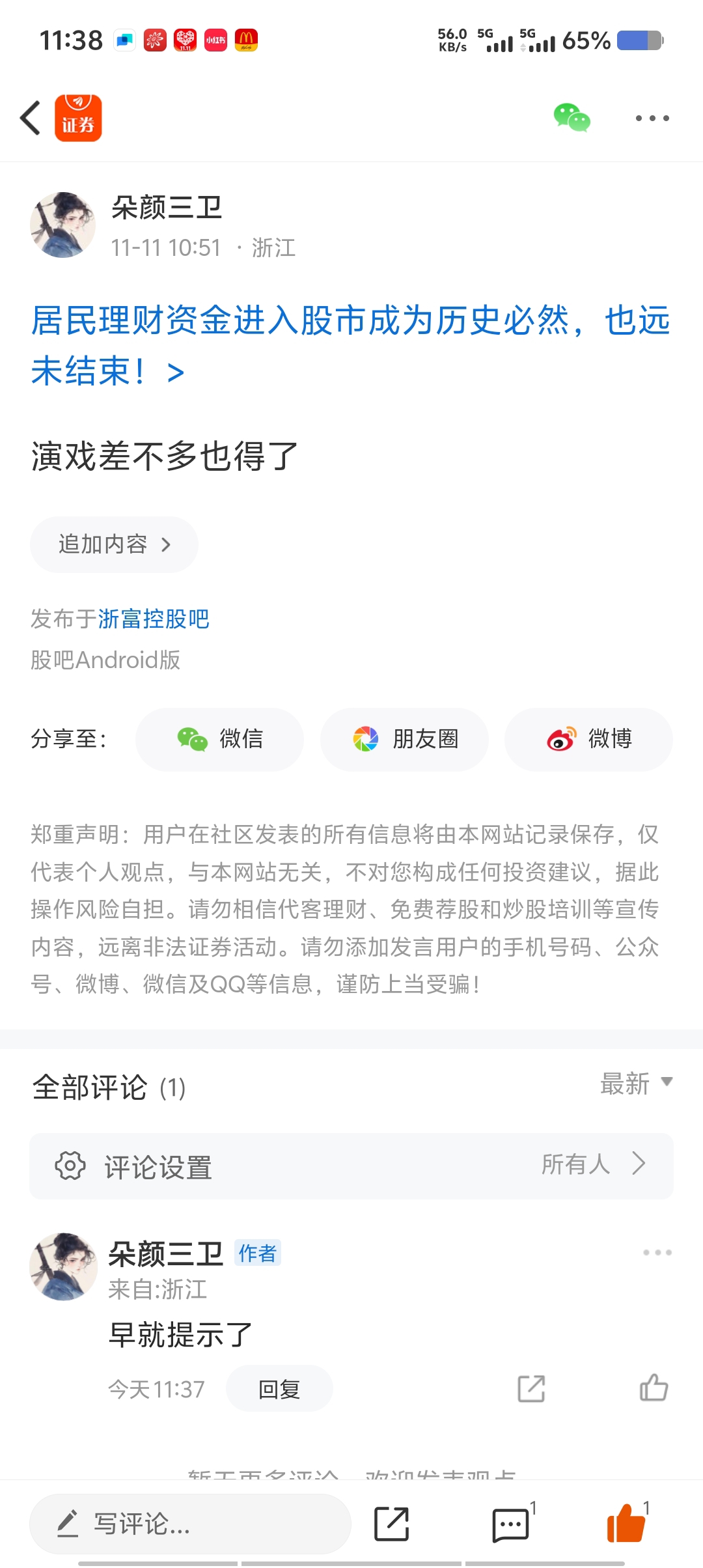 温馨提示: 1.根据《证券法》规定,禁止编造、传播虚假信息或者误导性信息,扰乱证券市场;2.用户在本社区发表的所有资料、言论等仅代表个人观点,与本网站立场无关,不对您构成任何投资建议。用户应基于自己的独立判断,自行决定证券投资并承担相应风险。《东方财富社区管理规定》