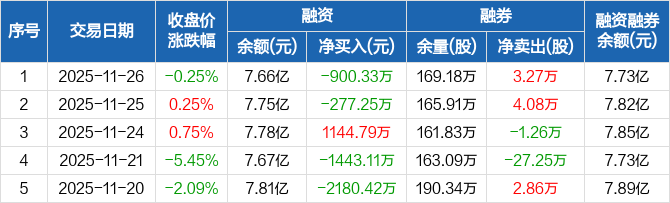 浙富控股:融资净偿还900.33万元,融资余额7.66亿元(11-26)