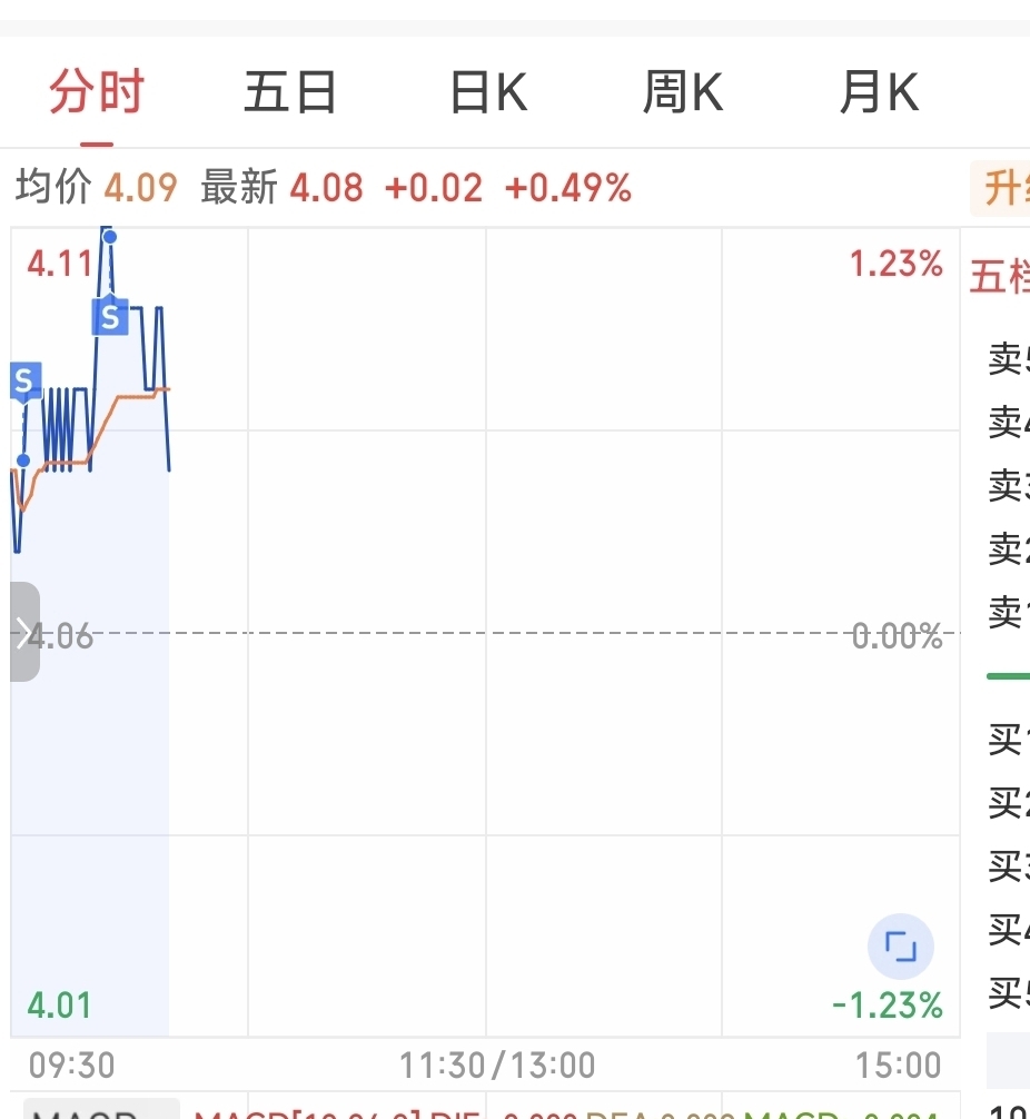 今日反t,早盘4.08,4.11分两笔清仓出局,期待下午有个不错的低价接回