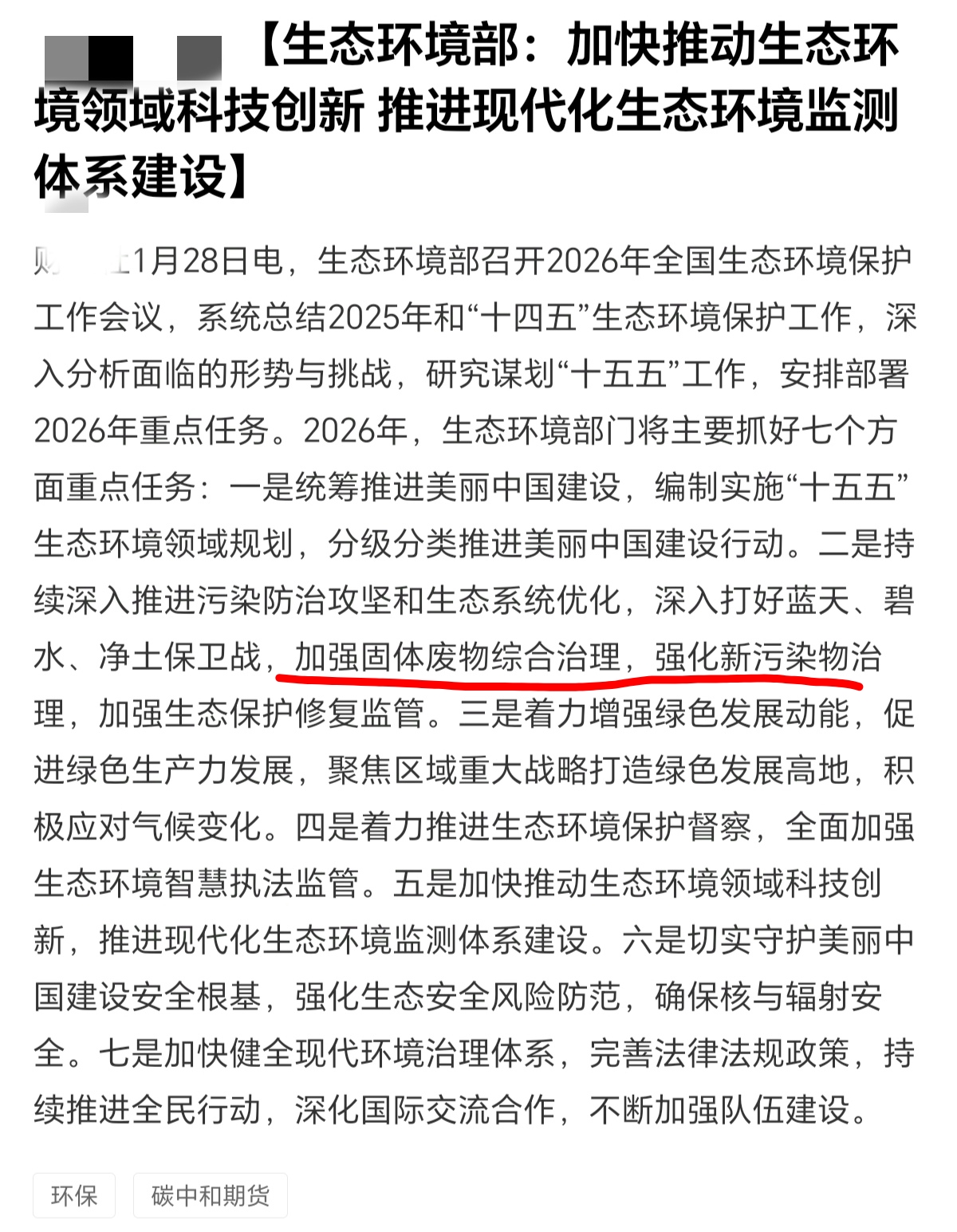 环境治理方面的利好