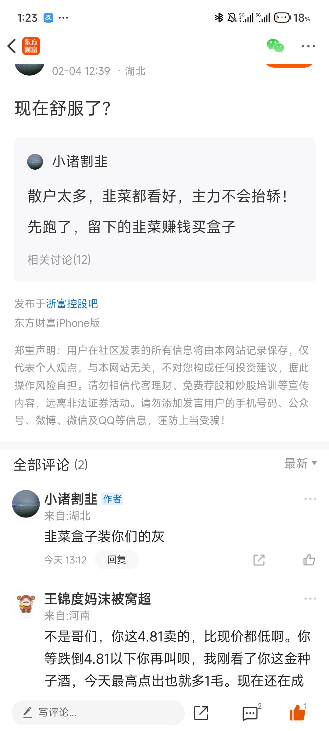 温馨提示: 1.根据《证券法》规定,禁止编造、传播虚假信息或者误导性信息,扰乱证券市场;2.用户在本社区发表的所有资料、言论等仅代表个人观点,与本网站立场无关,不对您构成任何投资建议。用户应基于自己的独立判断,自行决定证券投资并承担相应风险。《东方财富社区管理规定》