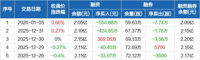 陕天然气:融资净偿还554.88万元,融资余额2.05亿元(01-05)