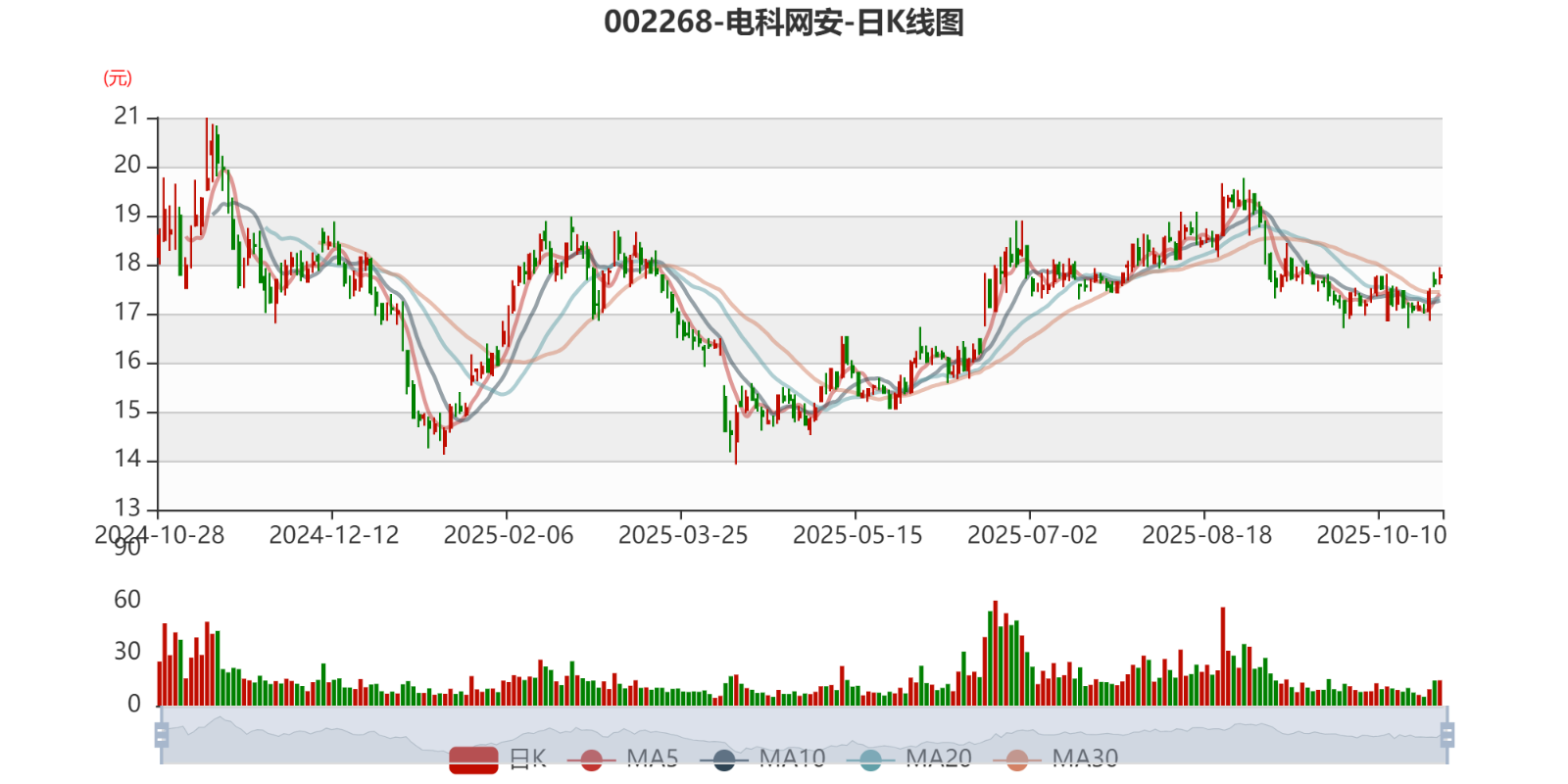 中证智能财讯电科网安(002268)10月28日披露2025年第三季度报告。前三季度公司实现营业总收入7.57亿元,同比下降23.71%;归母净利润亏损2.13亿元,上年同期亏损2.13亿元;扣非净利润亏损2.32亿元,上年同期亏损2.35亿元;经营活动产生的现金流量净额为-2.63亿元,上年同期为-9.39亿元;报告期内,电科网安基本每股收益为-0.2522元,加权平均净资产收益率为-3.86%。