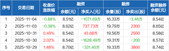 电科网安:融资净偿还1071.69万元,融资余额8.51亿元(11-04)