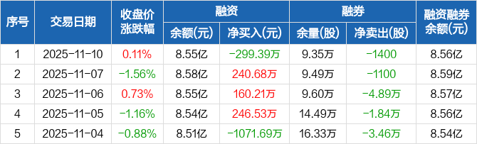 电科网安:融资净偿还299.39万元,融资余额8.55亿元(11-10)