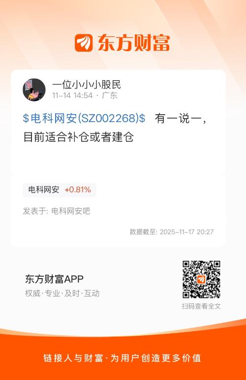 $电科网安(SZ002268)$  有一说一,目前适合补仓或者建仓