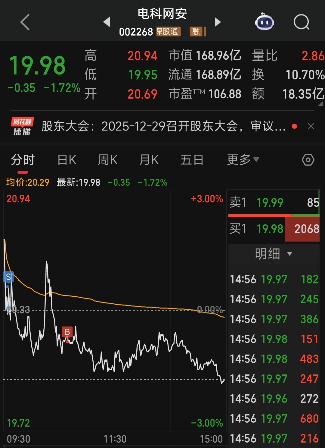 电科网安,今天早盘竞价看形势不对,早上红盘就20.45附近先全仓止盈了。因为下午没时间看盘,所以上午下来的时候就20.1接了一点仓位回来。虽然接的稍微高了1毛多,但是只接了五分之一仓位