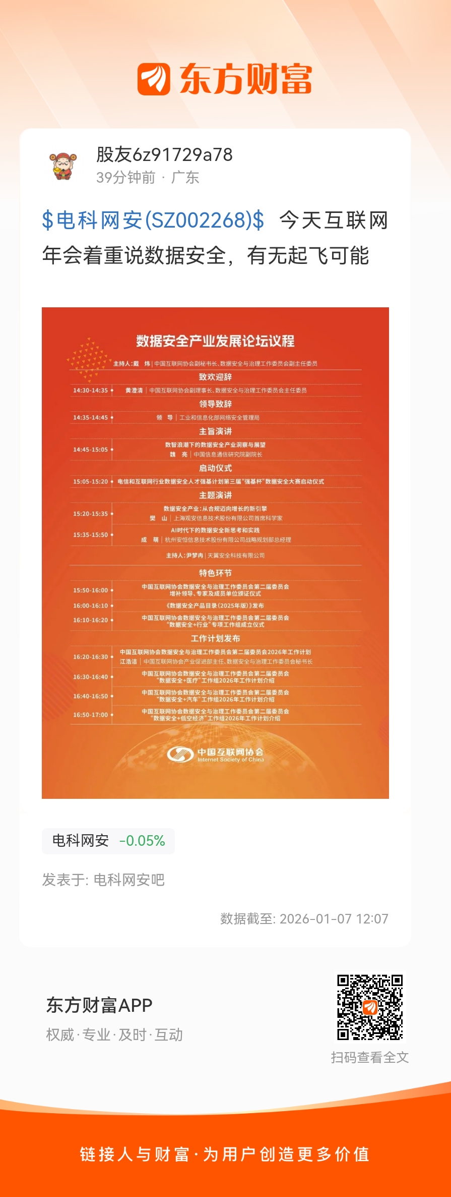 2026(第十六届)中国互联网产业年会于2026年1月7日至8日在北京召开,主题是“激发数字活力·赋能产业升级”,以“会议+征集+展览”为主线展开系列活动。核心聚焦三大方向:互联网大中小企业协同发展、卫星互联网、数据安全产业发展,会议将开展政策解读、痛点探讨与方向研判,相关赛道的政策支持与产业趋势有望迎来明确信号。$电科网安(SZ002268)$下午起飞?