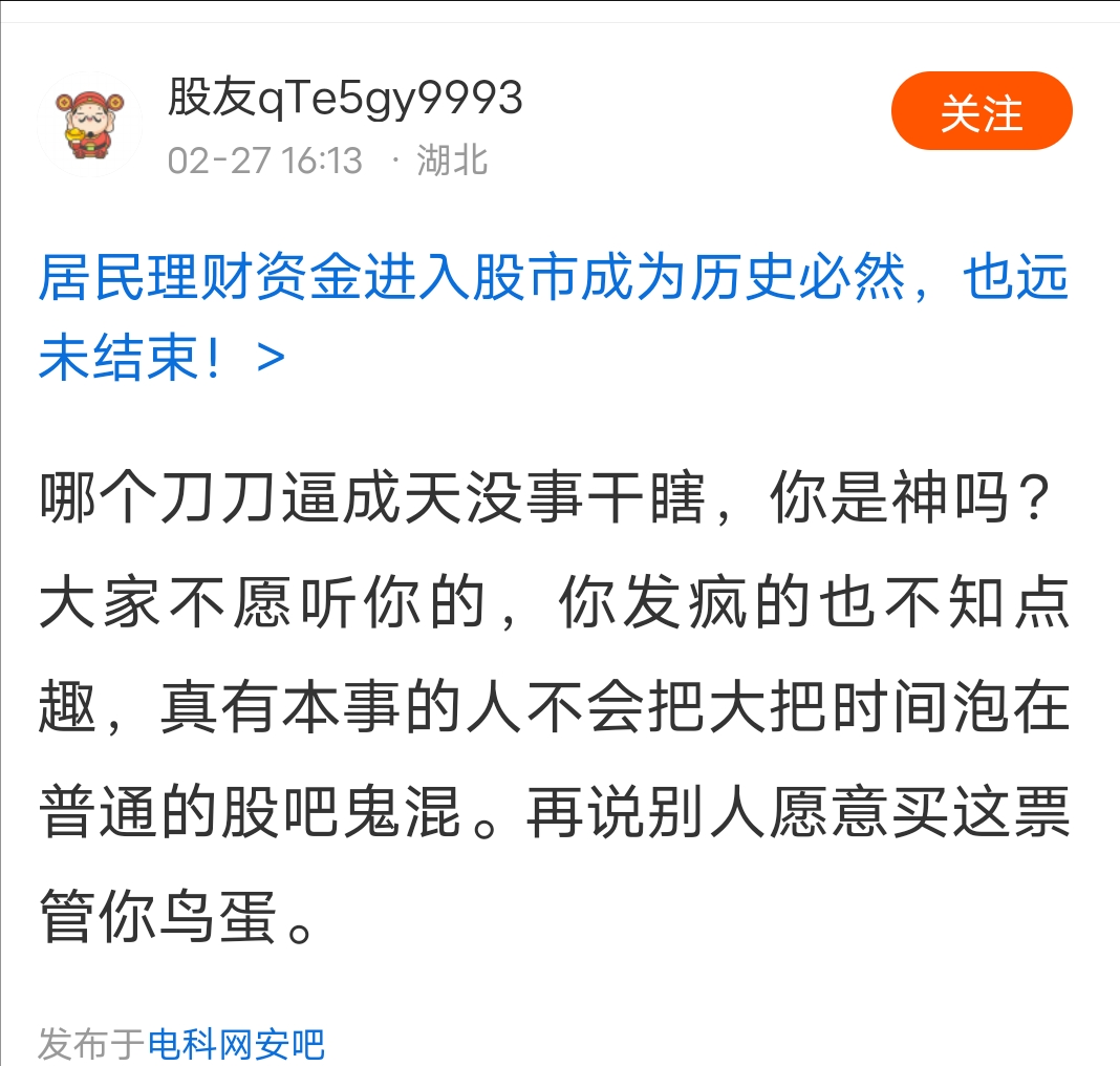 $电科网安(SZ002268)$ 就这痴线!救都救不了!刀哥我前天告诉人们跑,这痴线们就不信,背后诋毁我,刀哥昨天告送大家跑,痴线们还不信!哥都说了,刀哥这一战封神……热身三天告你们,最后提醒你们,按刀哥说得来了吧……刀哥我说了,这一战,刀哥在电科网安这股吧里封神,以后都叫我刀神……
