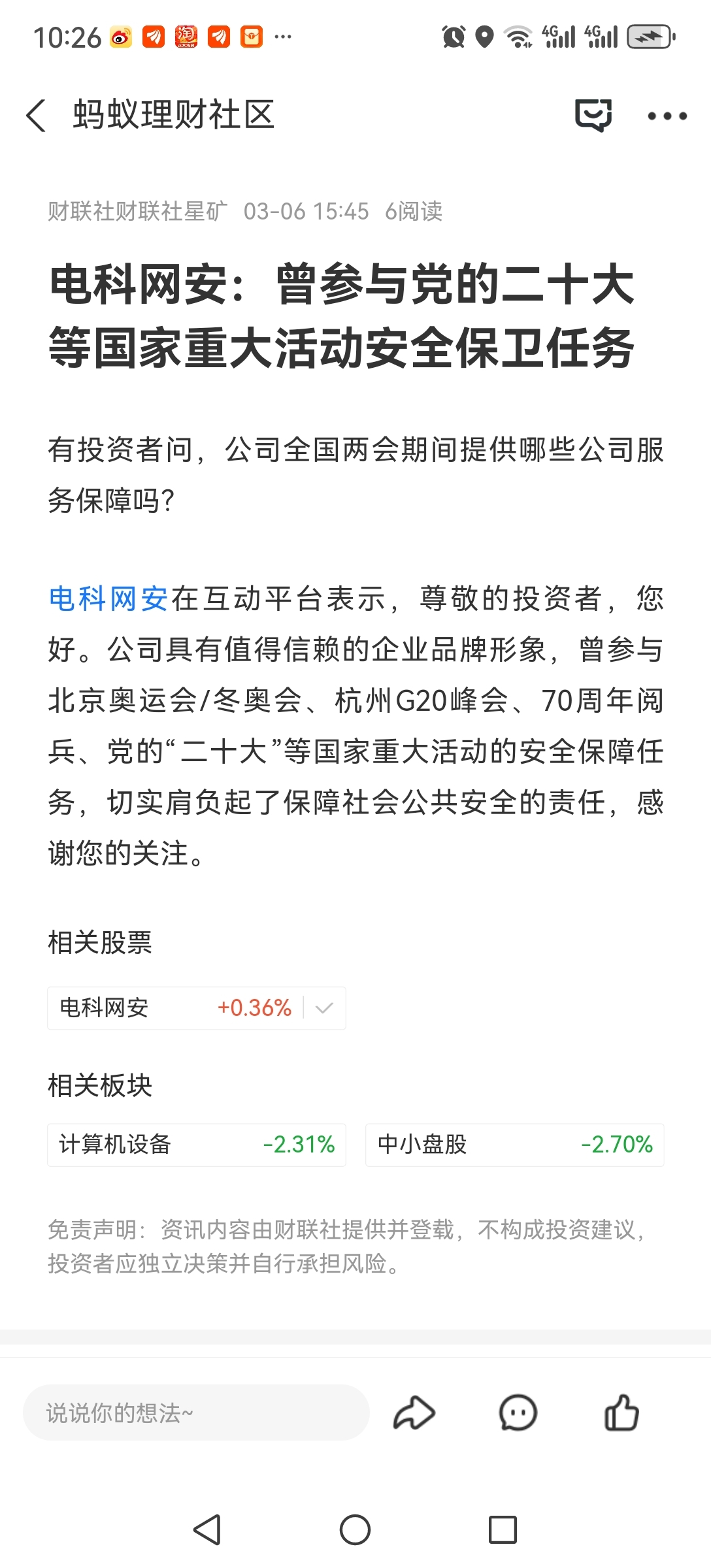 温馨提示: 1.根据《证券法》规定,禁止编造、传播虚假信息或者误导性信息,扰乱证券市场;2.用户在本社区发表的所有资料、言论等仅代表个人观点,与本网站立场无关,不对您构成任何投资建议。用户应基于自己的独立判断,自行决定证券投资并承担相应风险。《东方财富社区管理规定》
