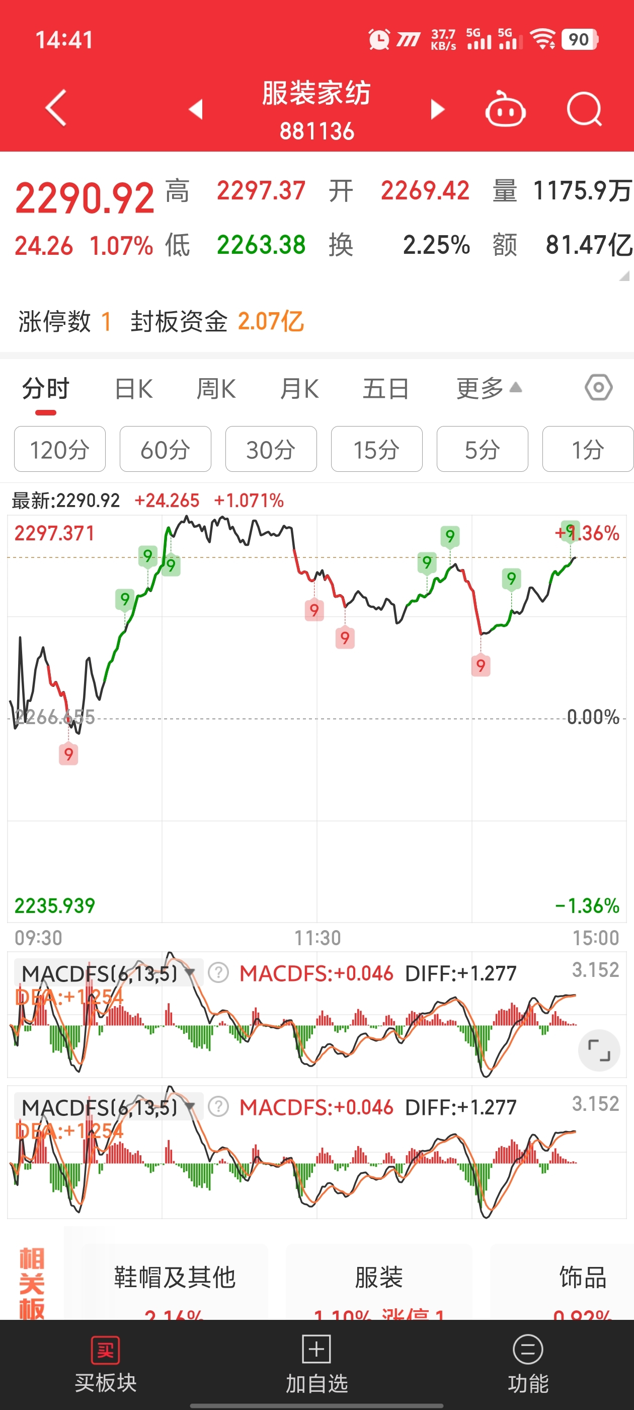 服装板块最高点收盘了这个星期肯定有涨停。