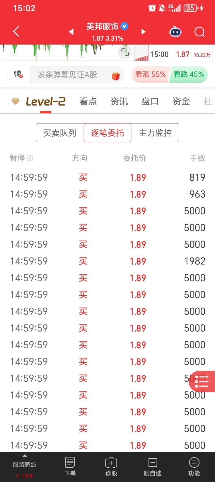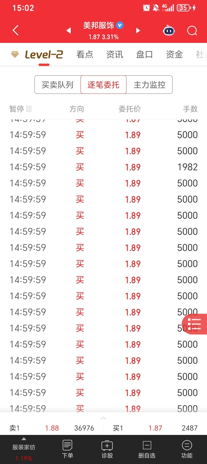 早上1.8割肉了,尾盘竞价的时候1.86竞价6000手,怎么一下吃了10万手