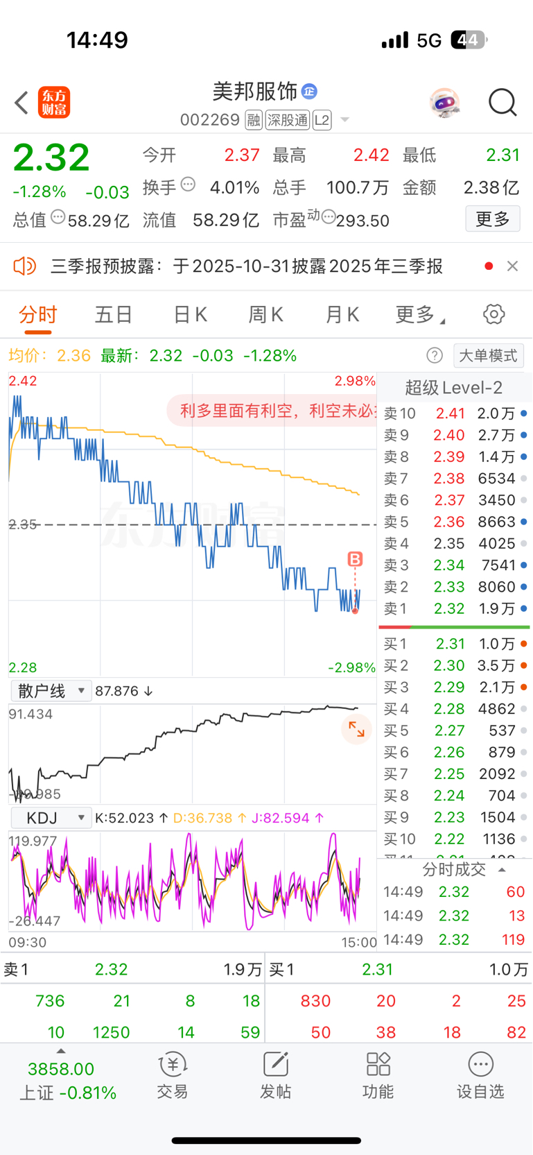 $美邦服饰(SZ002269)$ 弹幕说尾盘涨停,希望是真的吧