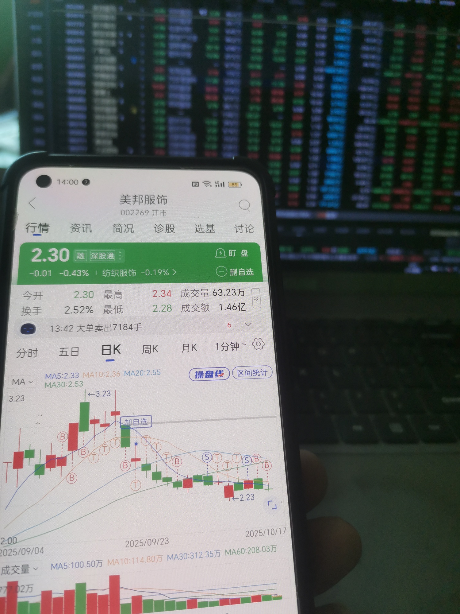 $美邦服饰(SZ002269)$ 一路向下,我一路做t,我前成本2块3毛一,你们还扛得住吗?我是仓位轻,我以继续向下,我还能继续踢,踢不动了,我就开始加仓