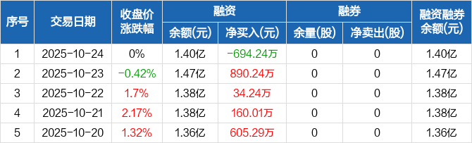 美邦服饰:融资净偿还694.24万元,融资余额1.4亿元(10-24)