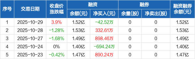 美邦服饰:融资净偿还42.52万元,融资余额1.52亿元(10-29)